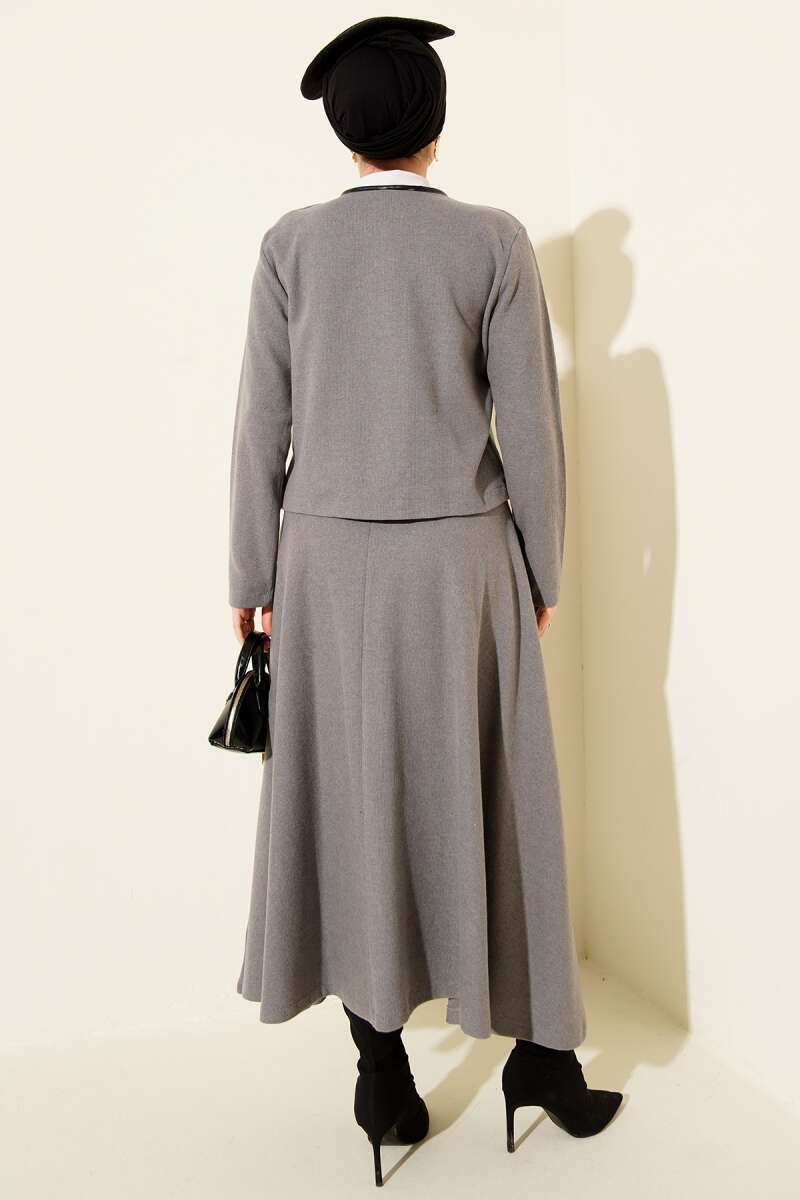 Brit Düğmeli Fitilli Kaşe Etekli İkili Takım Kahve