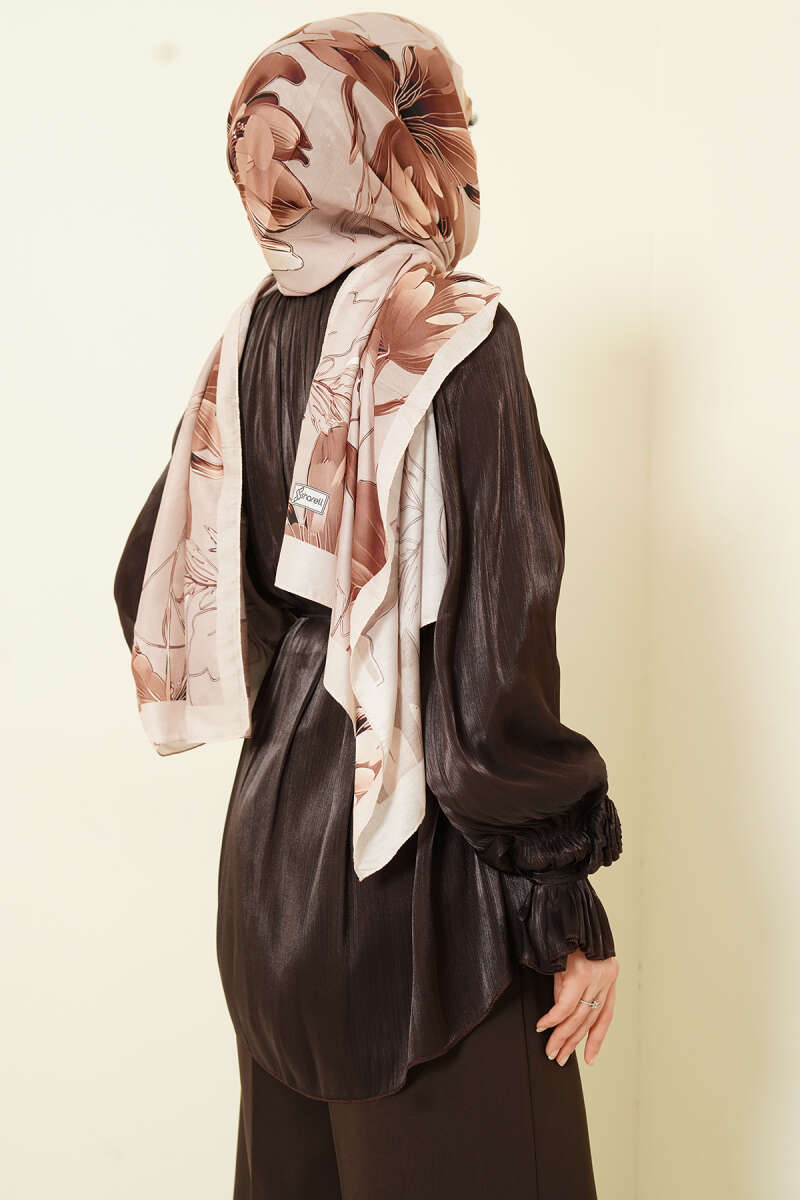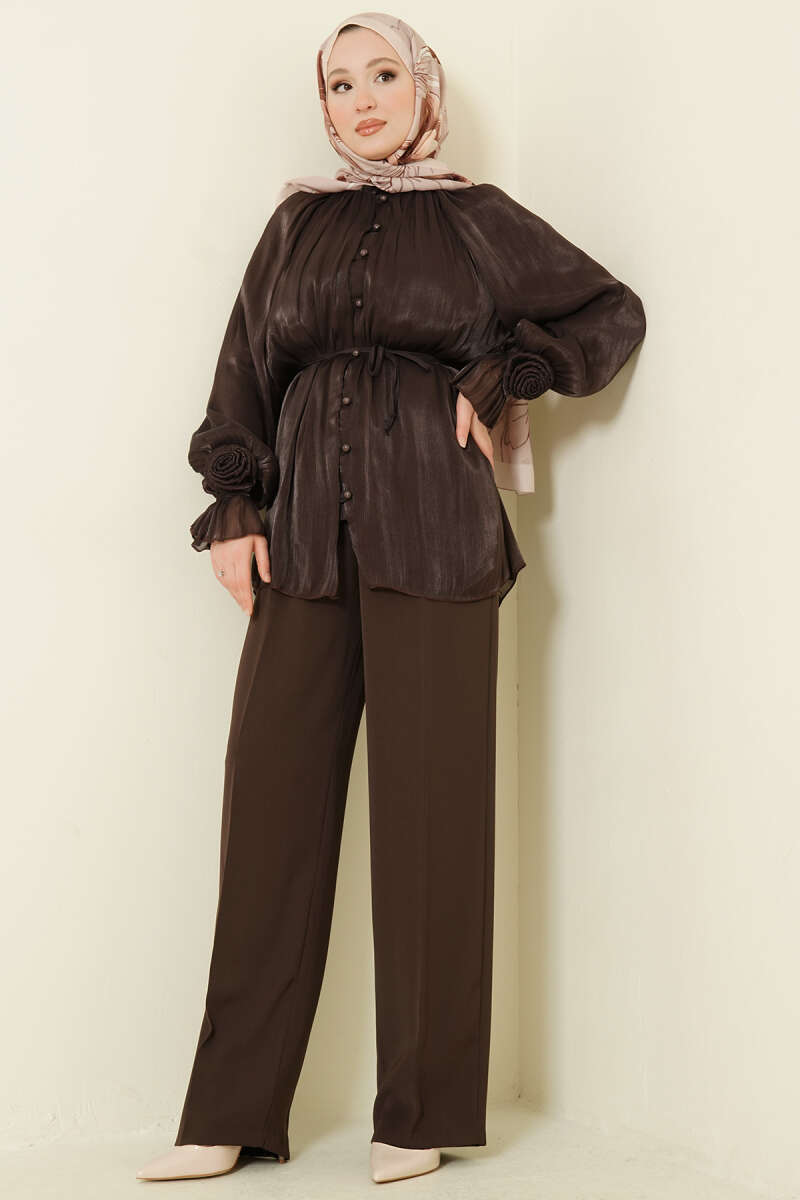 Brit Düğmeli Gül Detaylı Abiye Gömlek Acı Kahve