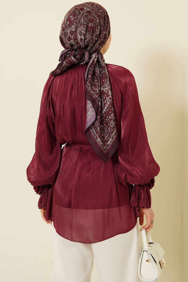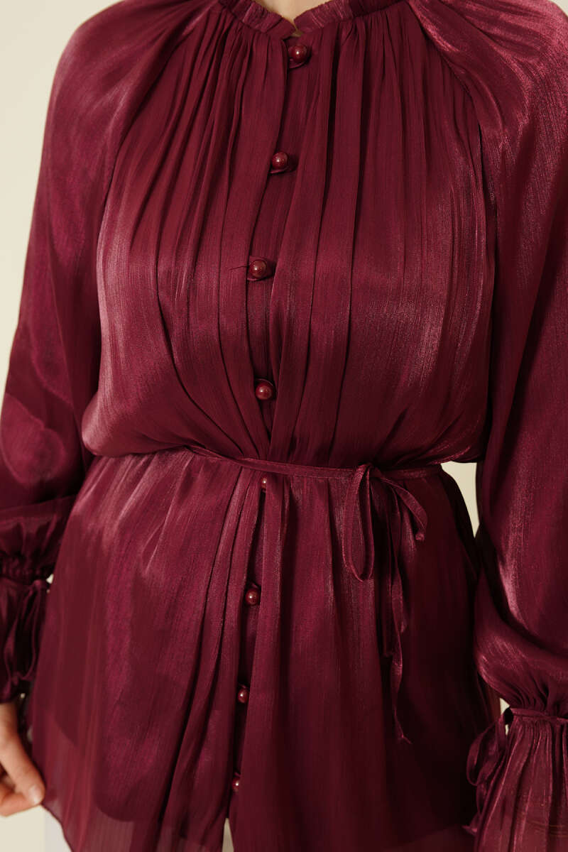 Brit Düğmeli Gül Detaylı Abiye Gömlek Bordo