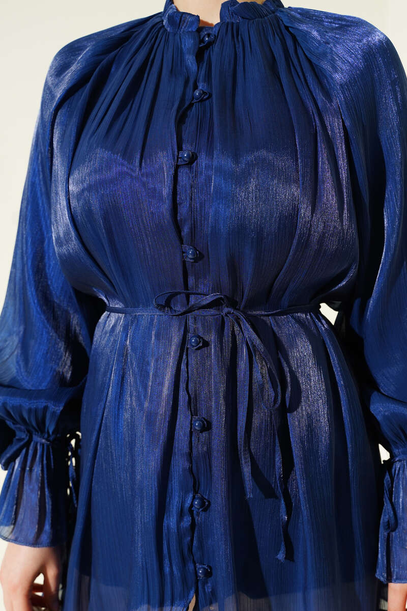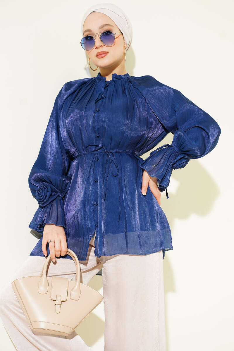 Brit Düğmeli Gül Detaylı Abiye Gömlek Buz Mavisi