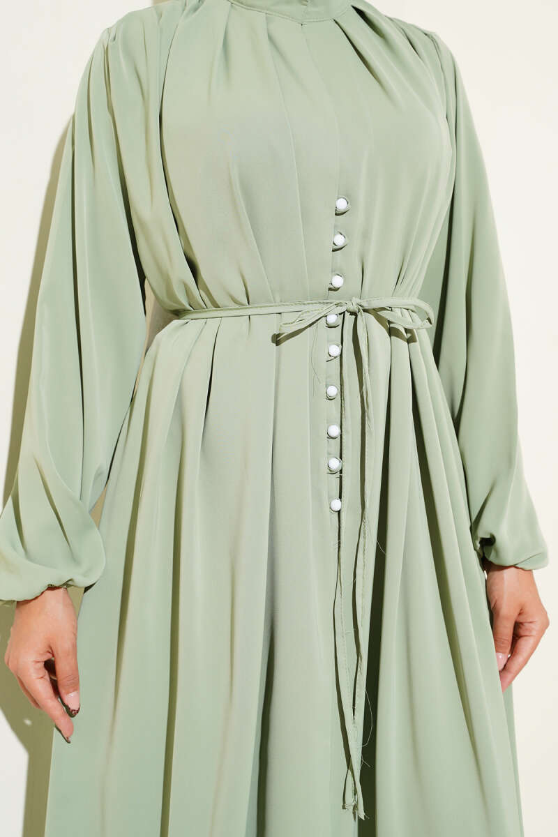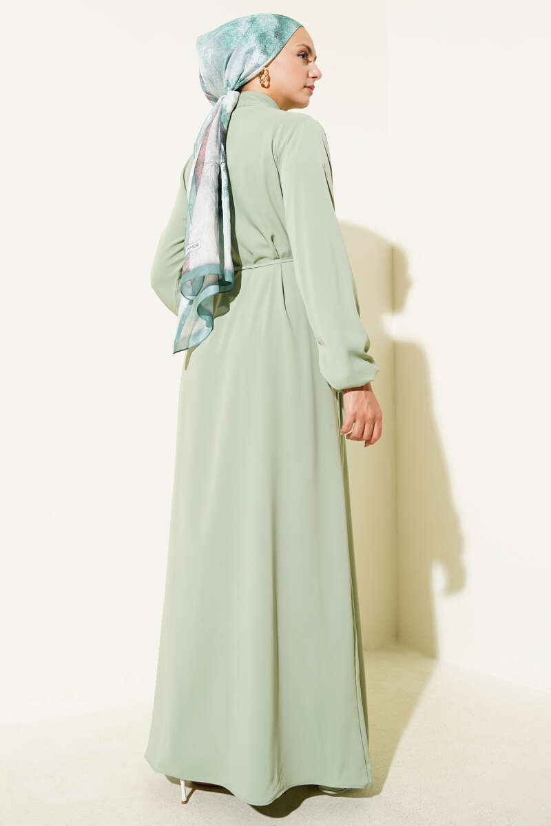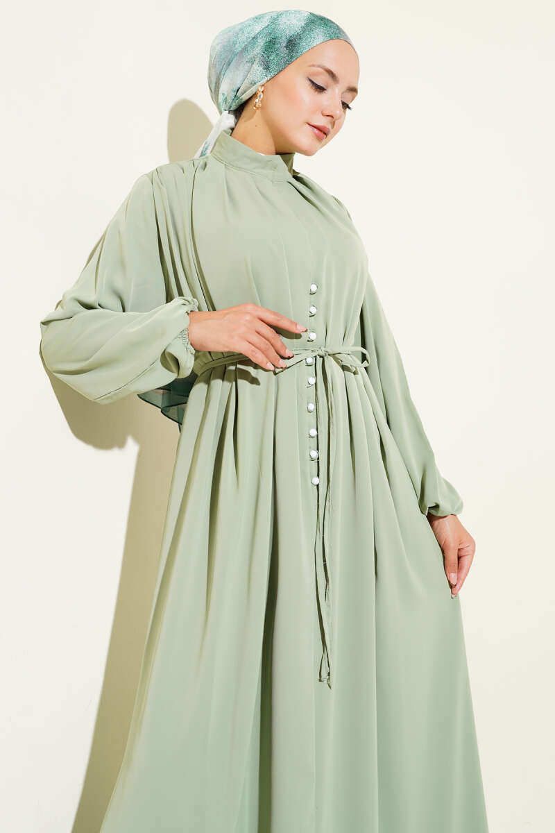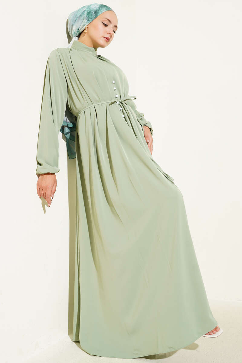 Kolları Fiyonk Detaylı Selanik Elbise Taş