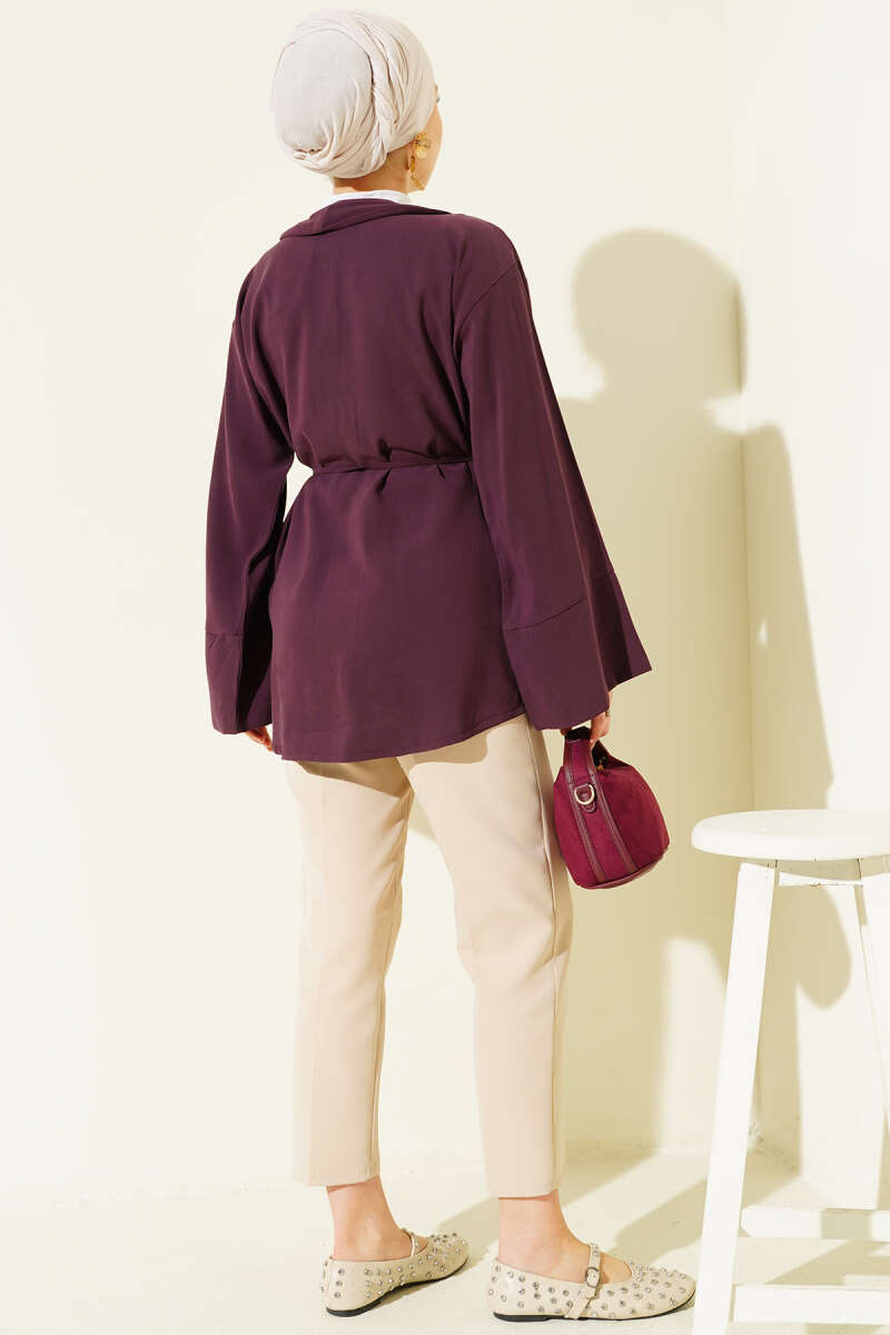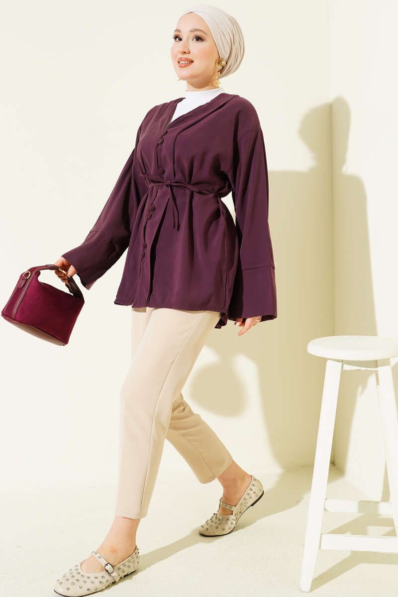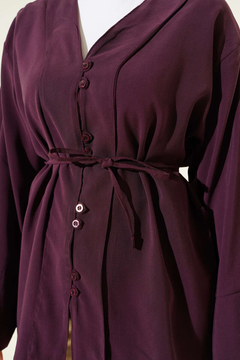 İp Kuşaklı Omuz Pelerinli Tencel Gömlek Bordo