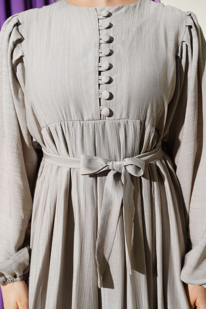Bel Parça Detaylı Tensel Elbise Kayrak Grisi