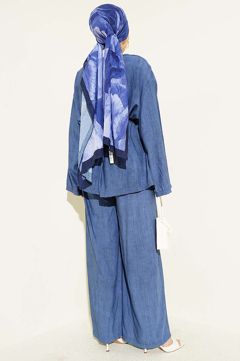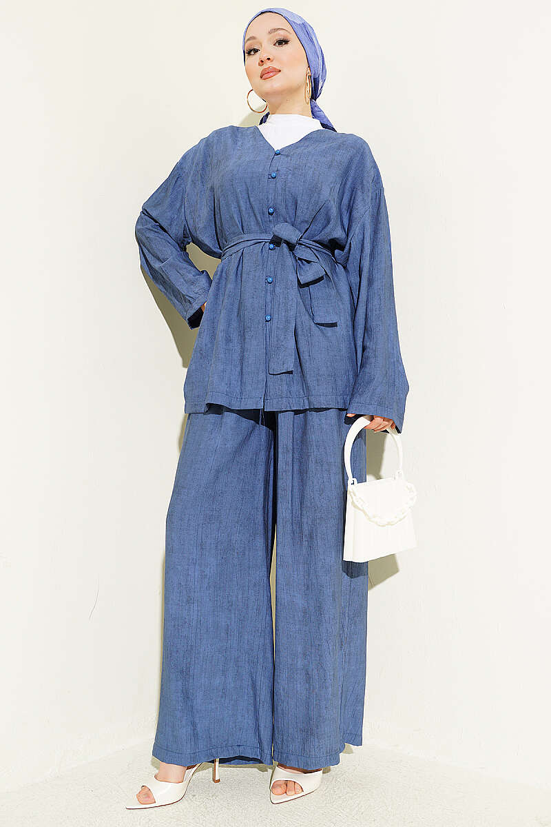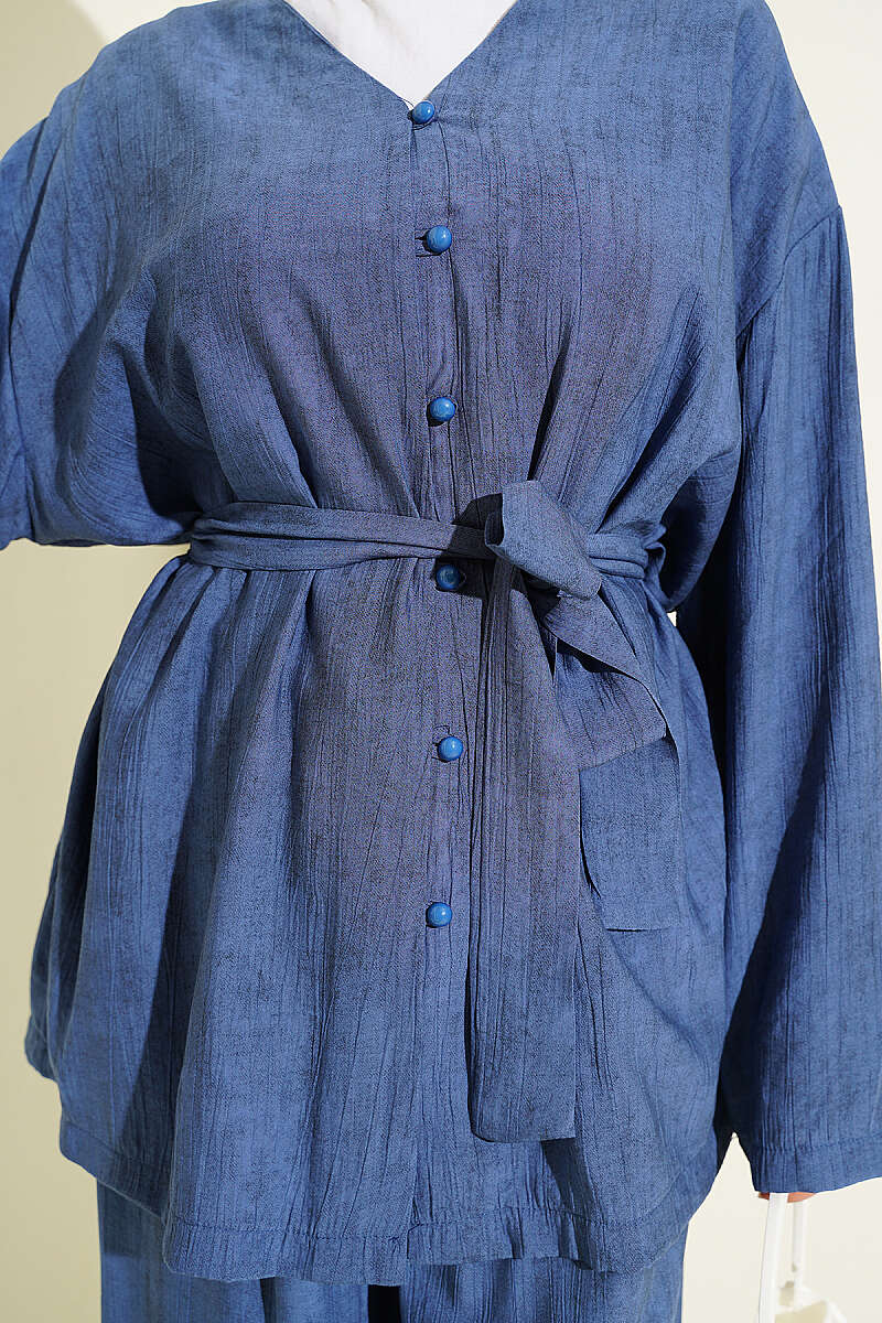 Brit Düğmeli Kuşaklı İkili Takım Lacivert