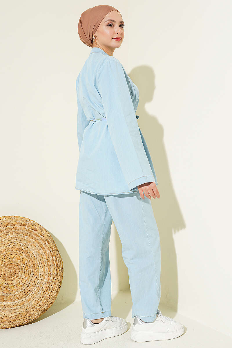 Brit Düğmeli Nervürlü Kot İkili Takım Kot Mavisi