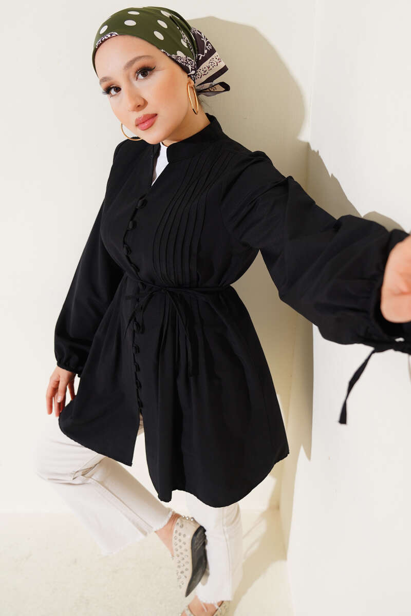 Etek Ucu Garni Detaylı Loyşa Tunik Siyah