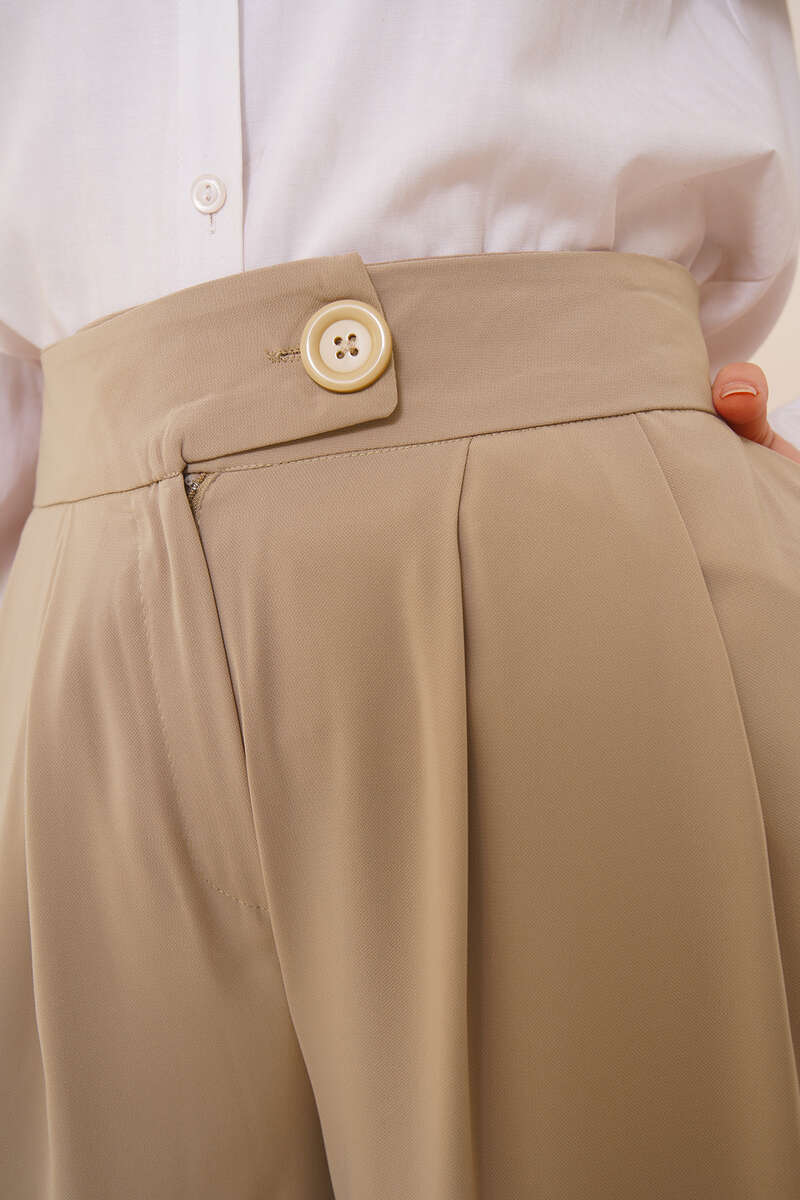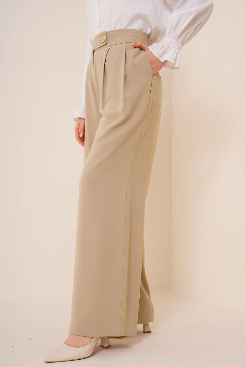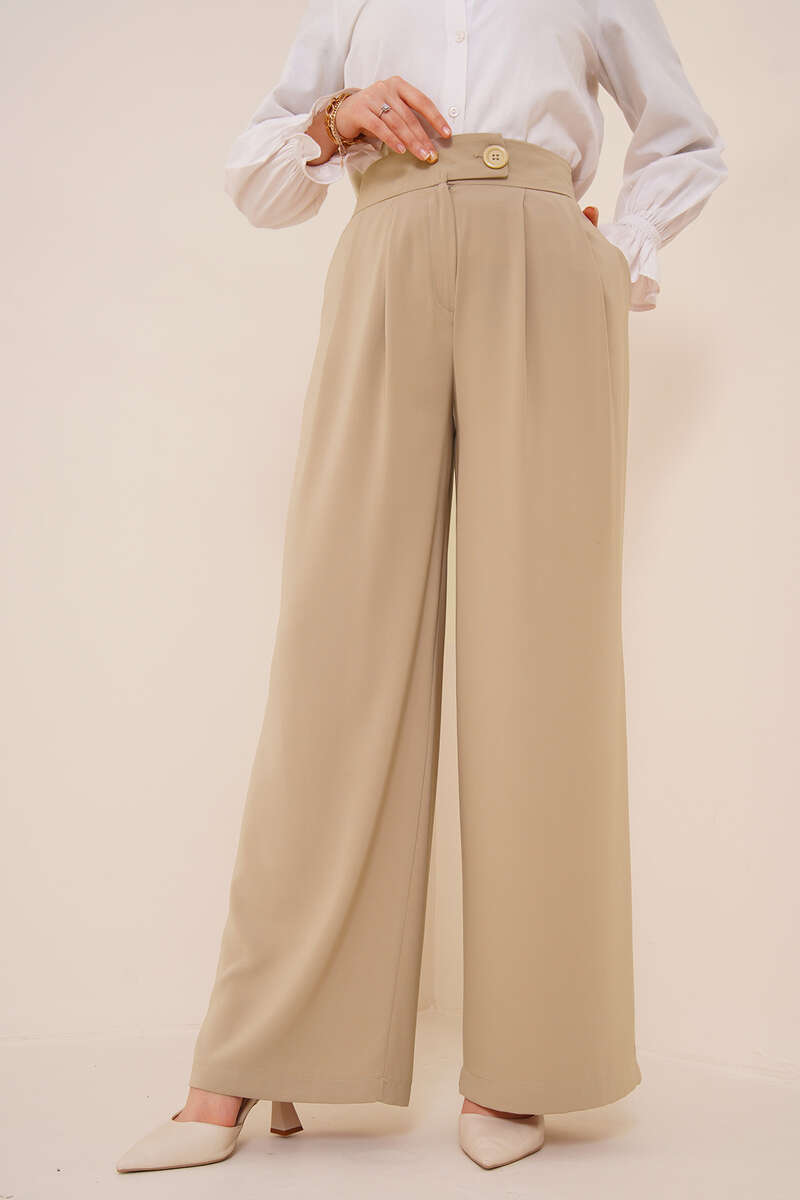 Rahatlık kavramına yeni bir soluk getiren harika bir pantolon. Salaş yapısıyla oldukça rahat edeceğiniz pantolonun önünde büyük düğme bulunmaktadır. Fermuarlıdır. Önü pile detaylıdır. Geniş paçalıdır. Oldukça rahattır. Her kıyafetinizle rahatlıkla kombinleyebilirsiniz.