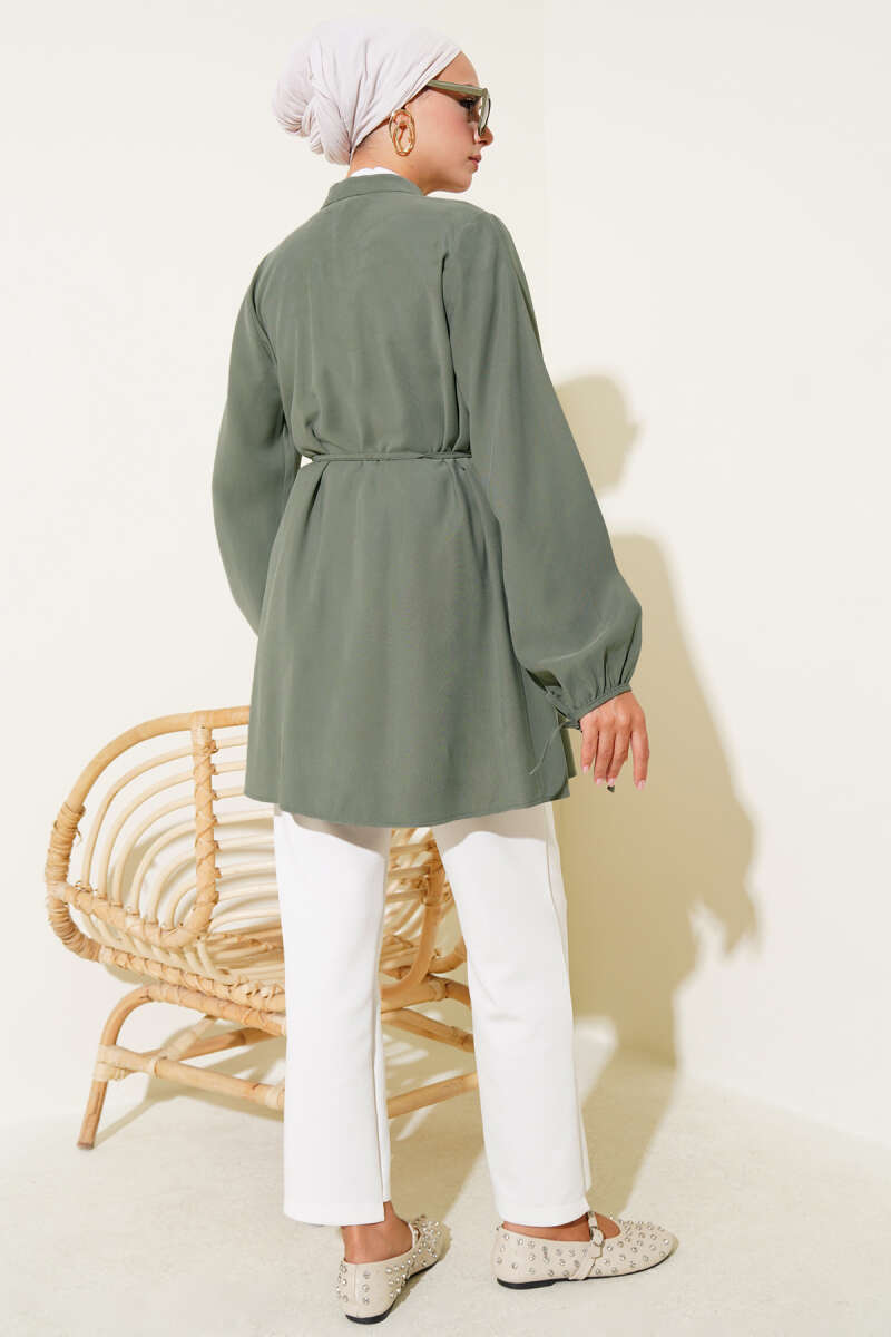 Yaka Bağlamalı Saten Gömlek Yeşil