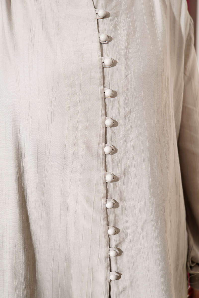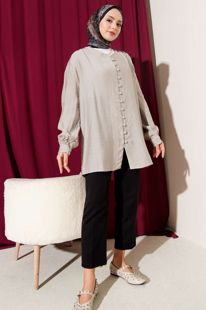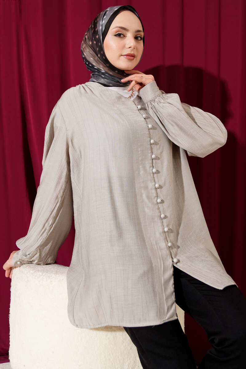 Brit Düğmeli V Yaka Gömlek Gri
