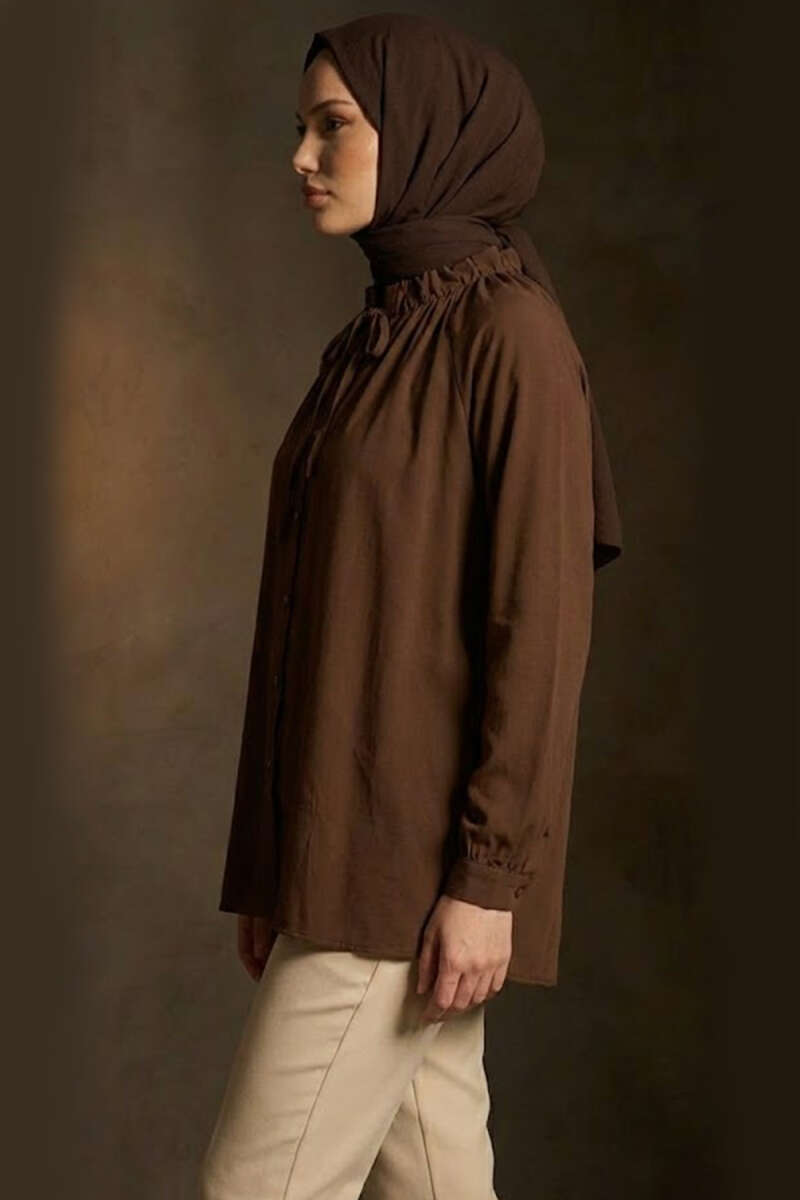 Bel İpli Düşük Omuz Gömlek Vizon