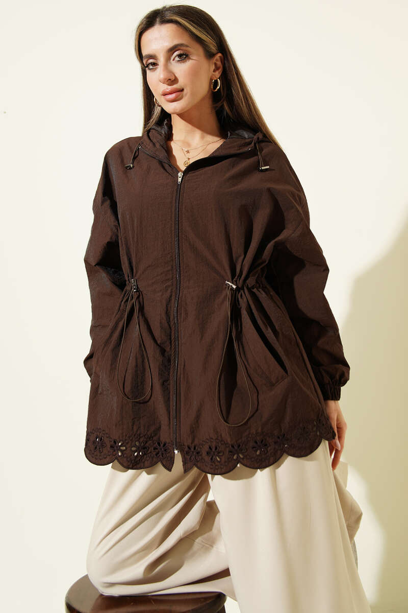 Kol Ribanalı Kapüşonlu Buklet Kap Kahve