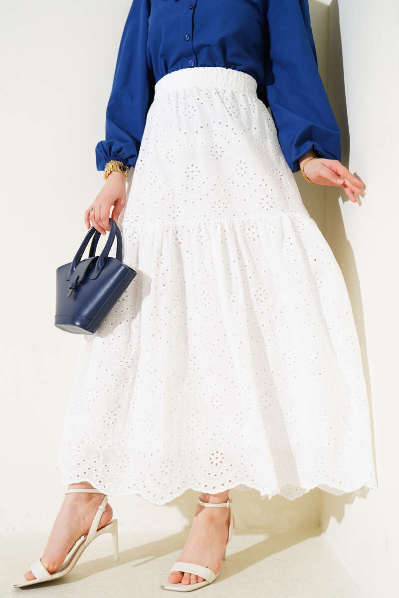 Bel Lastikli Ekoseli Scuba Etek Gül Kurusu