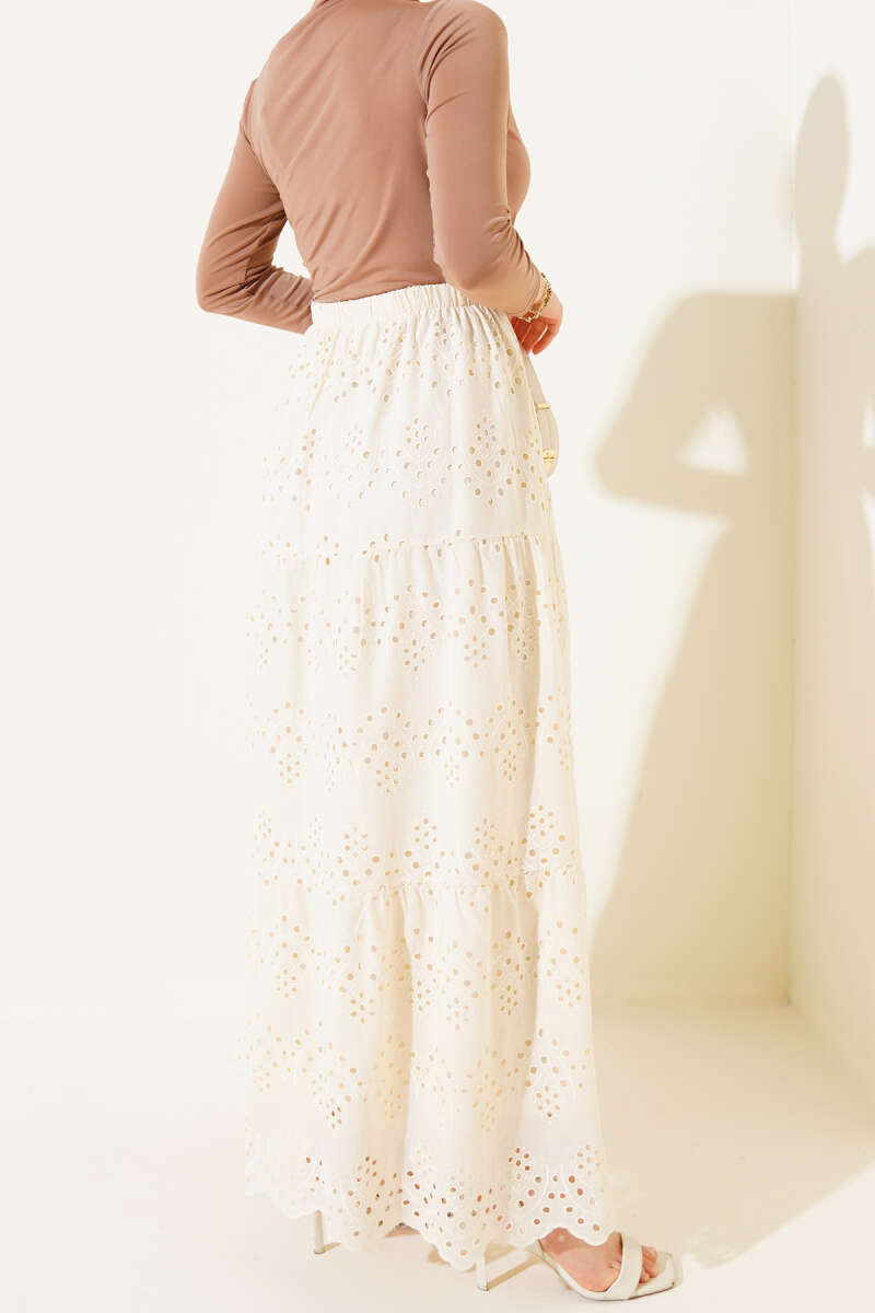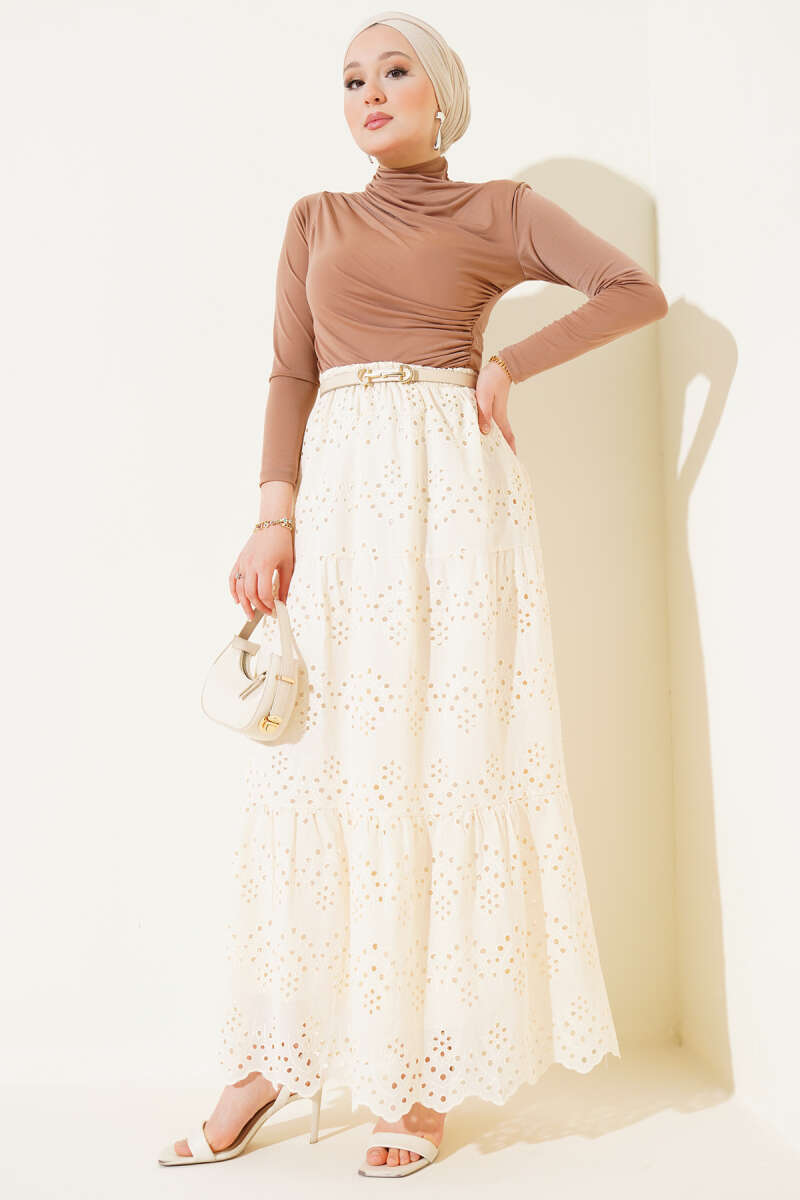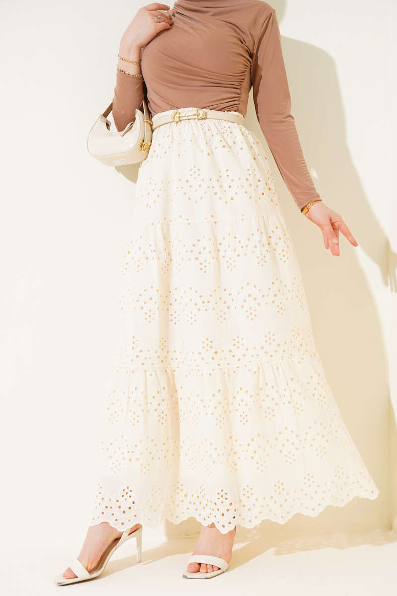 Ekose Desenli Kloş Kaşe Etek Kırmızı