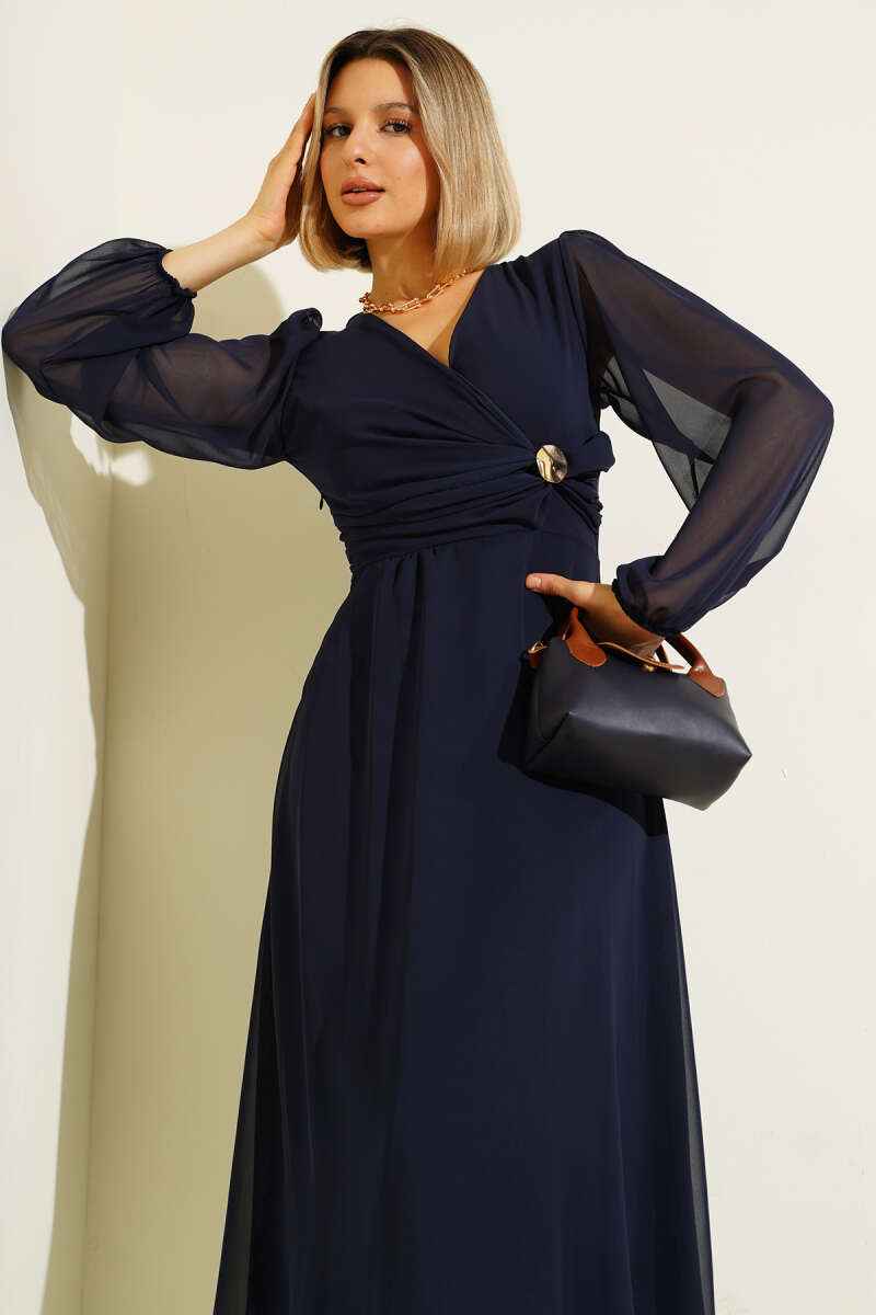 Yaka Düğmeli Baskılı Sweatshirt Lacivert