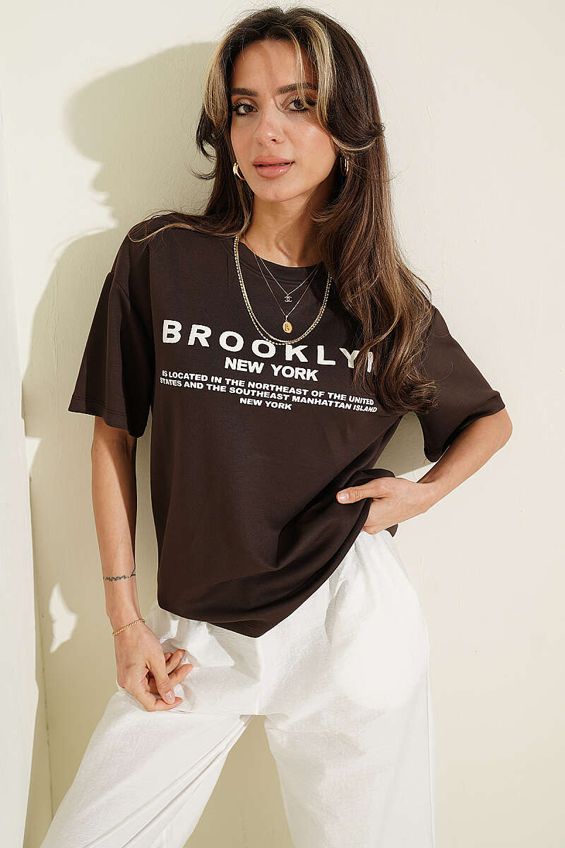 Brooklyn Baskılı Loyşa T-shirt Kahve
