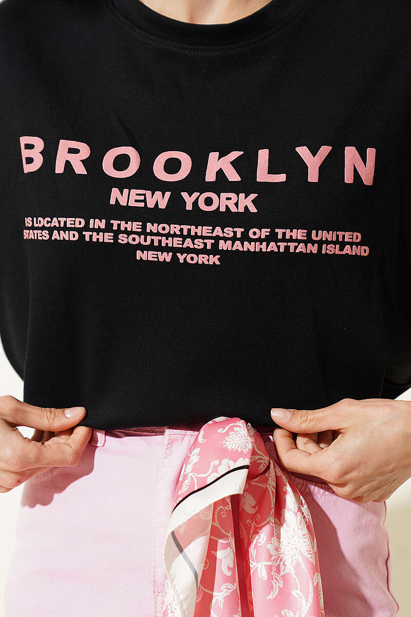 Brooklyn Baskılı Loyşa T-shirt Siyah