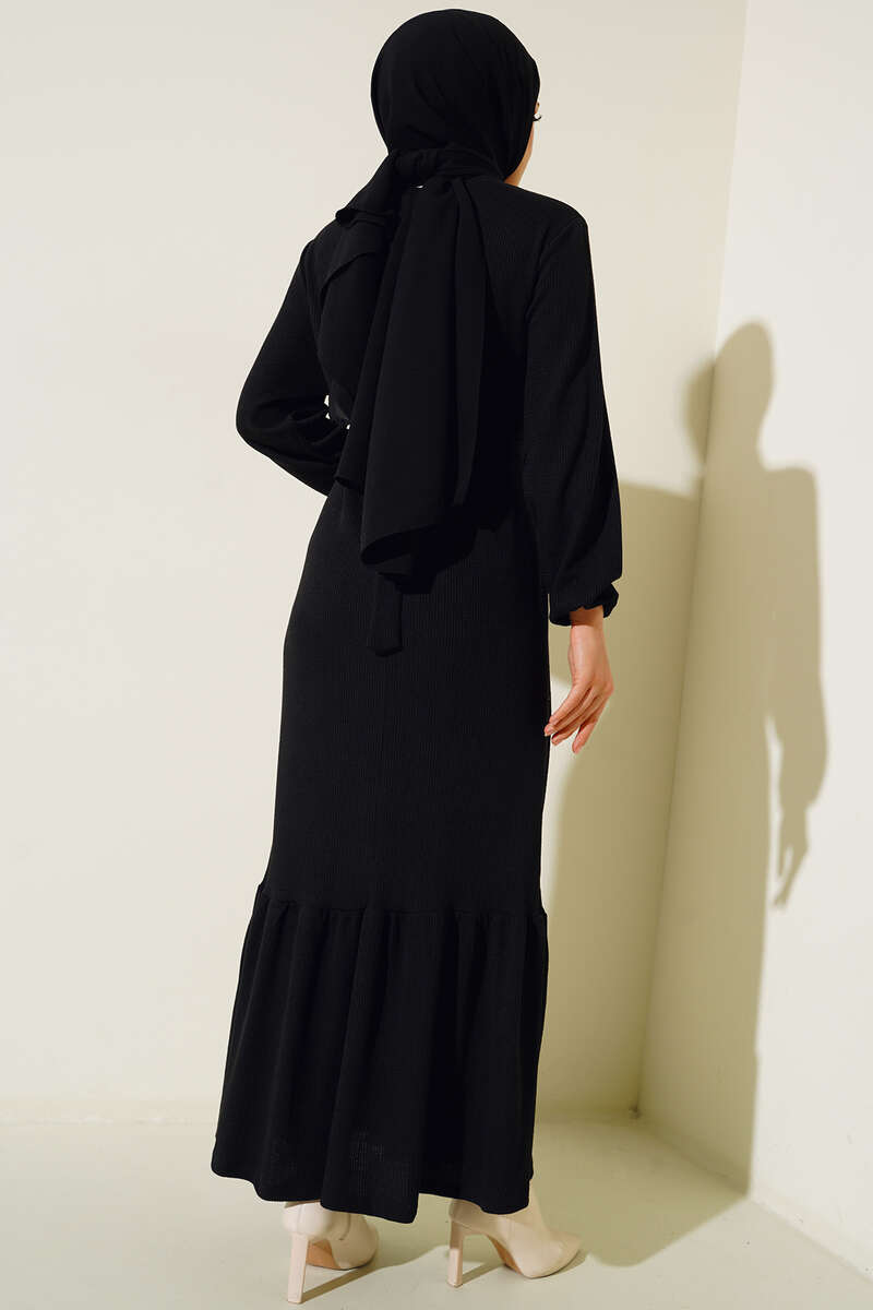 Balıkçı Yaka Düz Triko Elbise Siyah