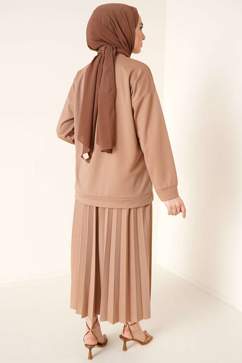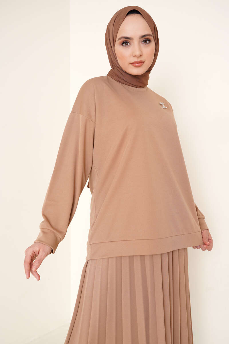 Yeni sezon etekli ikili takımımız şık tasarımıyla sizler için geldi. Tuniğimizde parlak taşlı broş bulunmaktadır. Oldukça dikkat çekmektedir. Oversize yapıdadır. Rahattır. Eteğimiz beli lastikli piliseli modeldir. Takımımızı her yerde rahatlıkla giyebilirsiniz. Farklı renk seçenekleri mevcuttur.