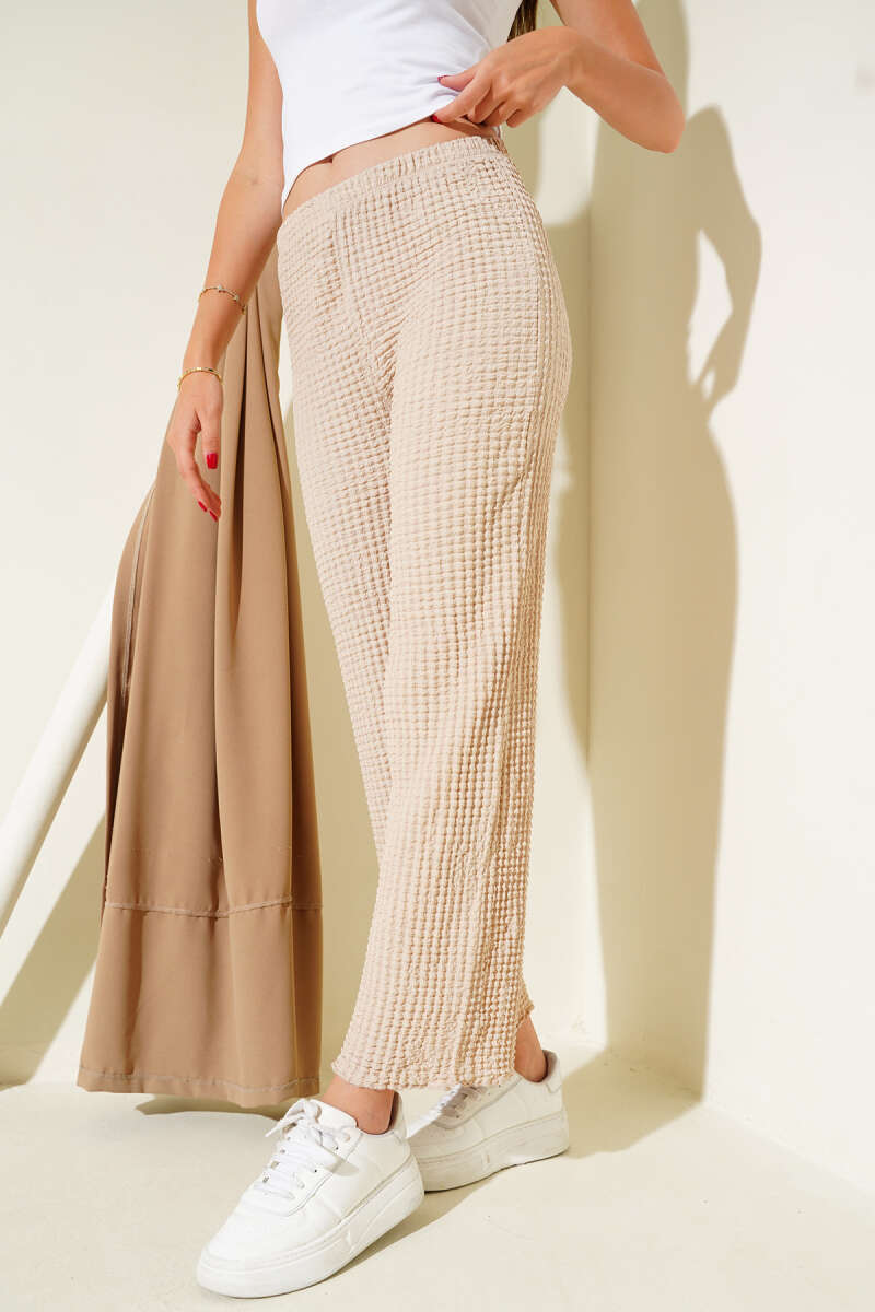 Çizgi Kabartmalı Triko Kazak Yağ Yeşili