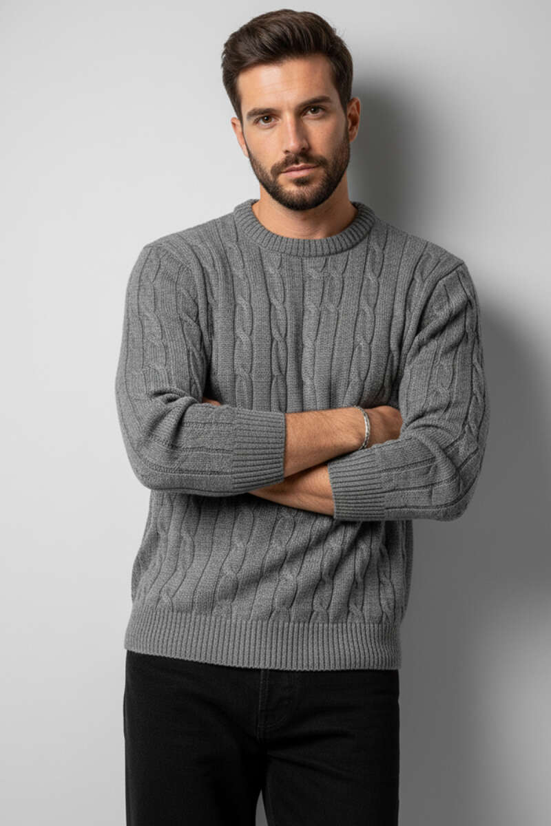 Tam Balıkçı Erkek Triko Kazak Ekru