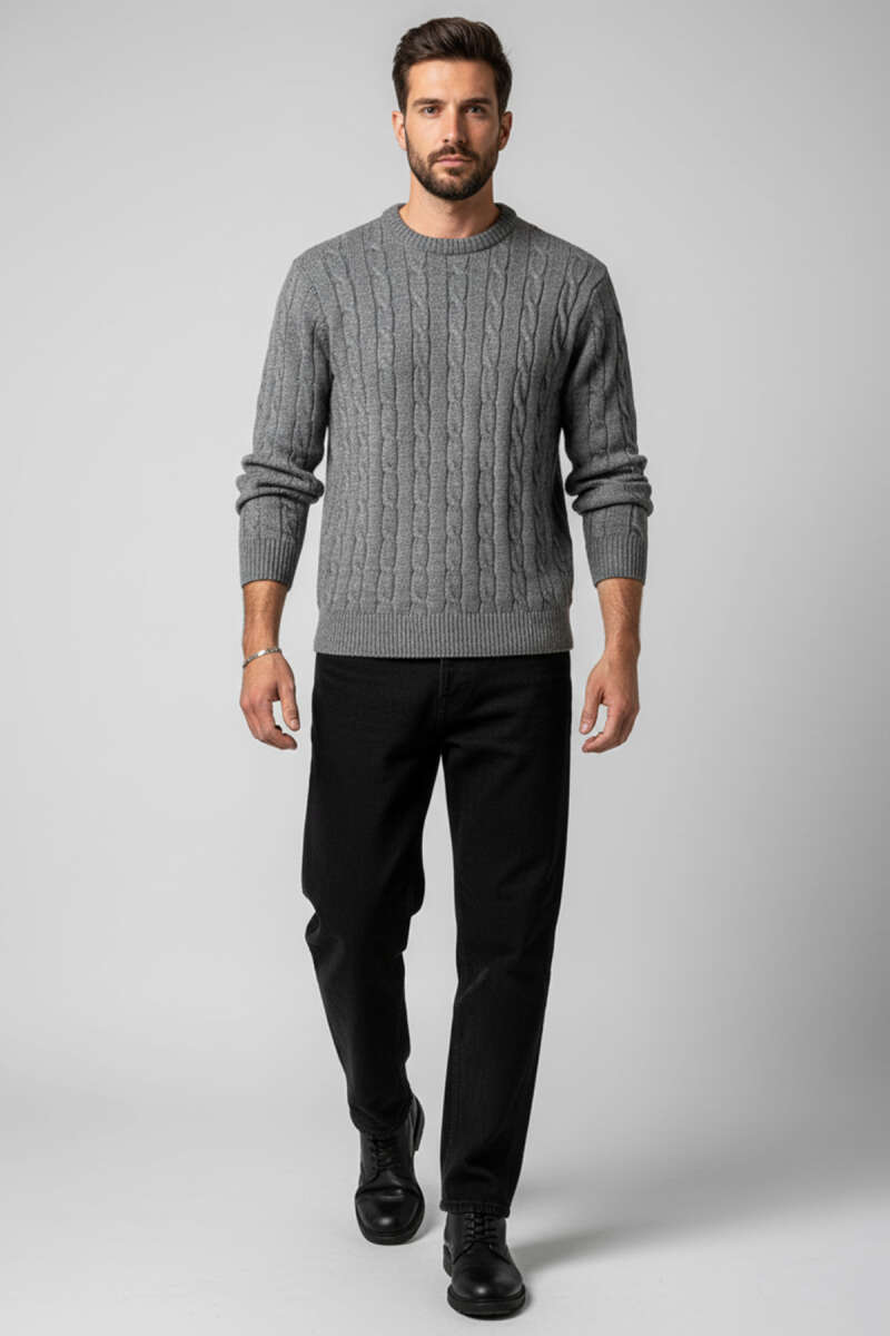 Tam Balıkçı Erkek Triko Kazak Siyah