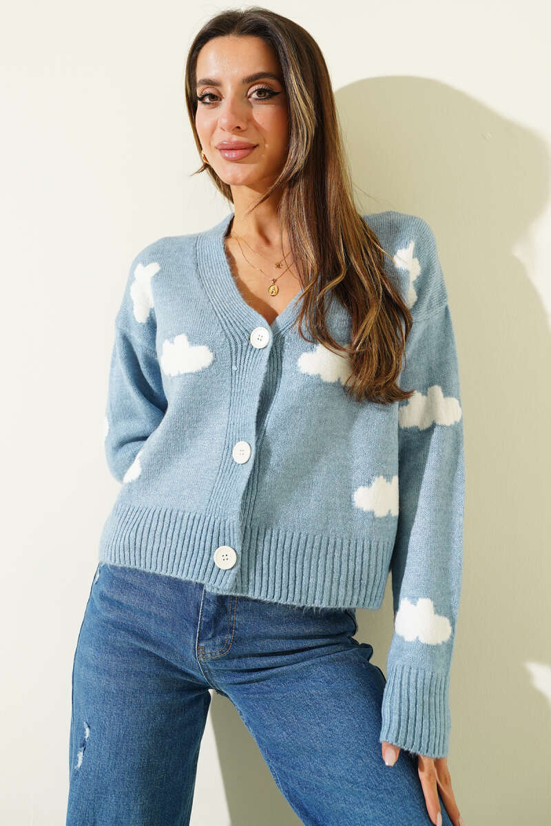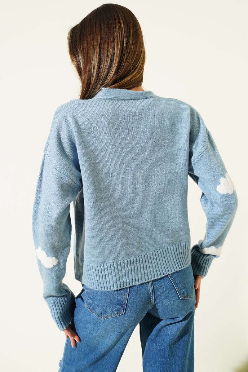 Bisiklet Yaka Basic Yumoş Kazak Mavi