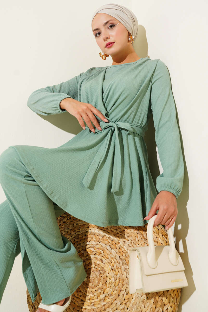 Kanguru Cepli Fermuarlı İkili Takım Çağla Yeşili