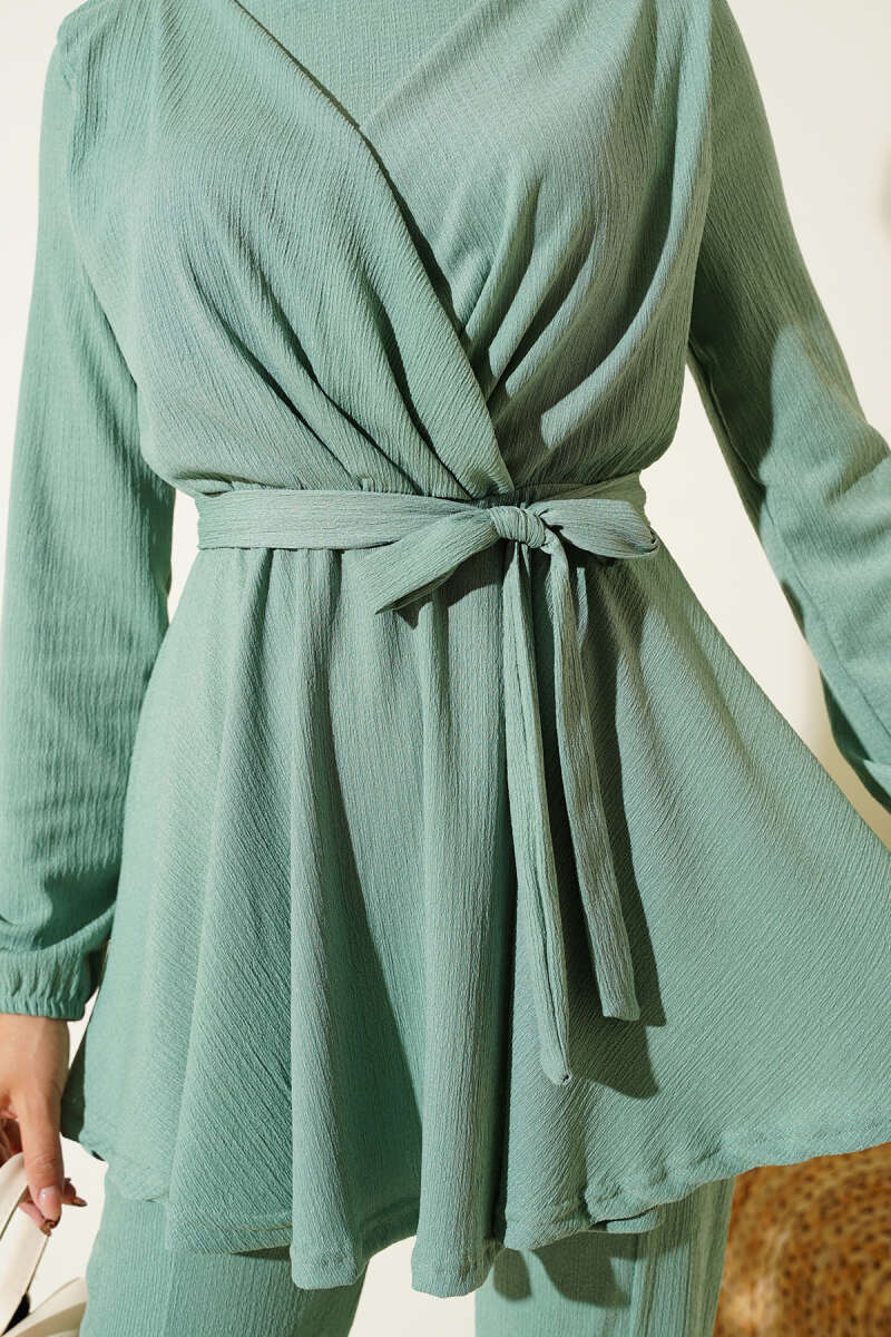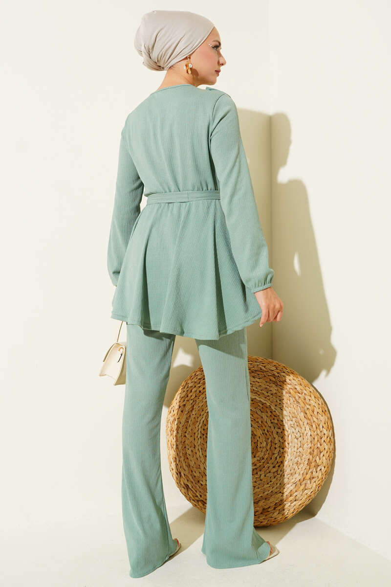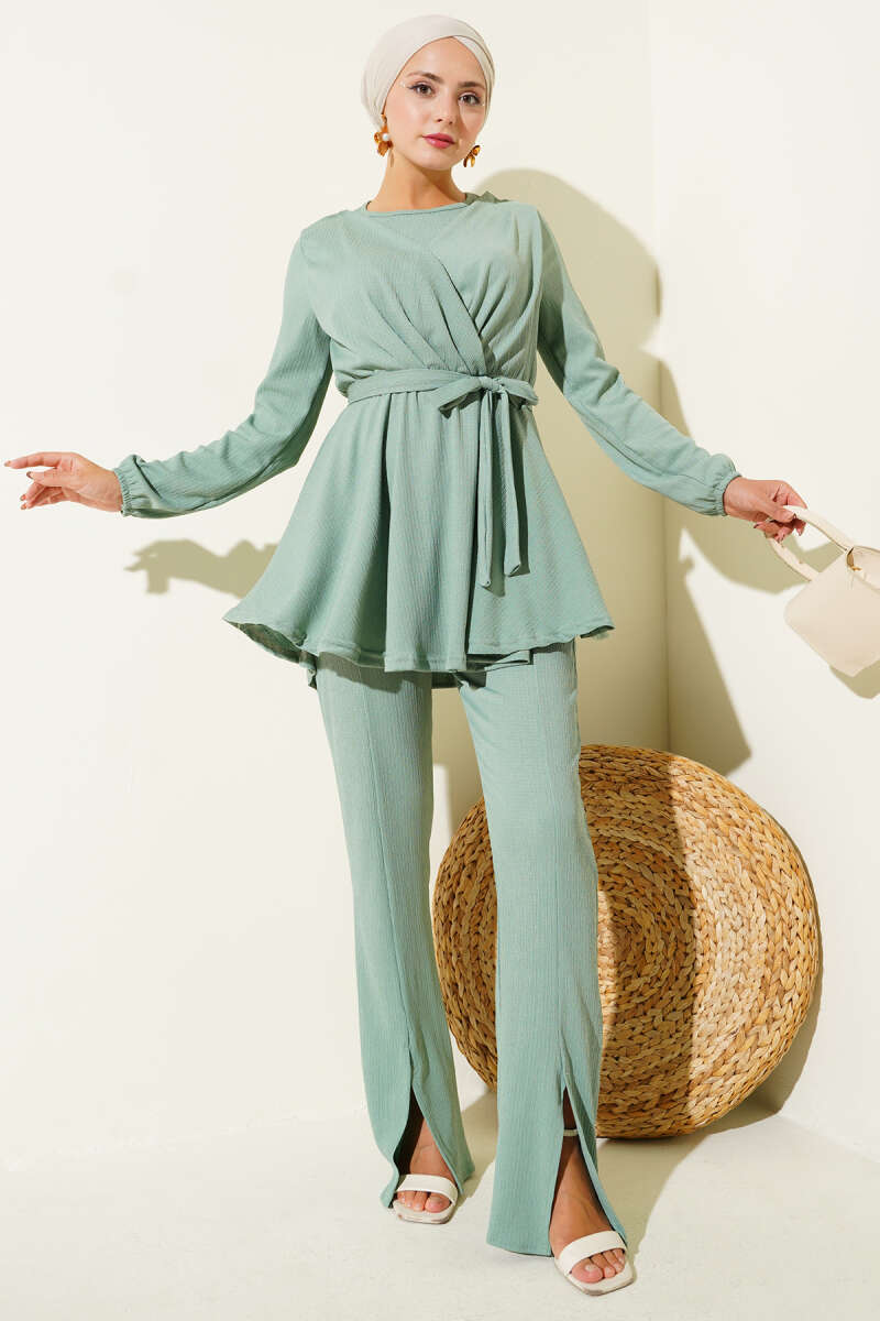 Loyşa Taşlı Fermuarlı İkili Takım Haki
