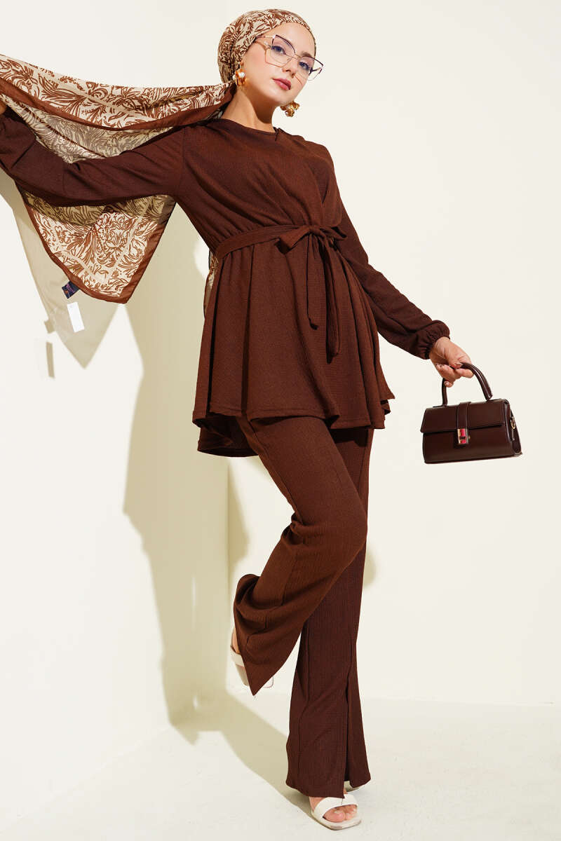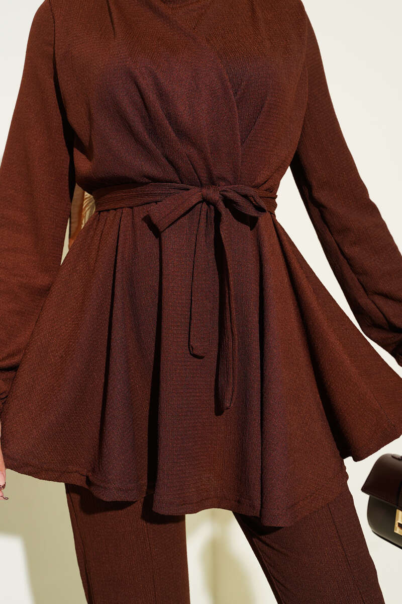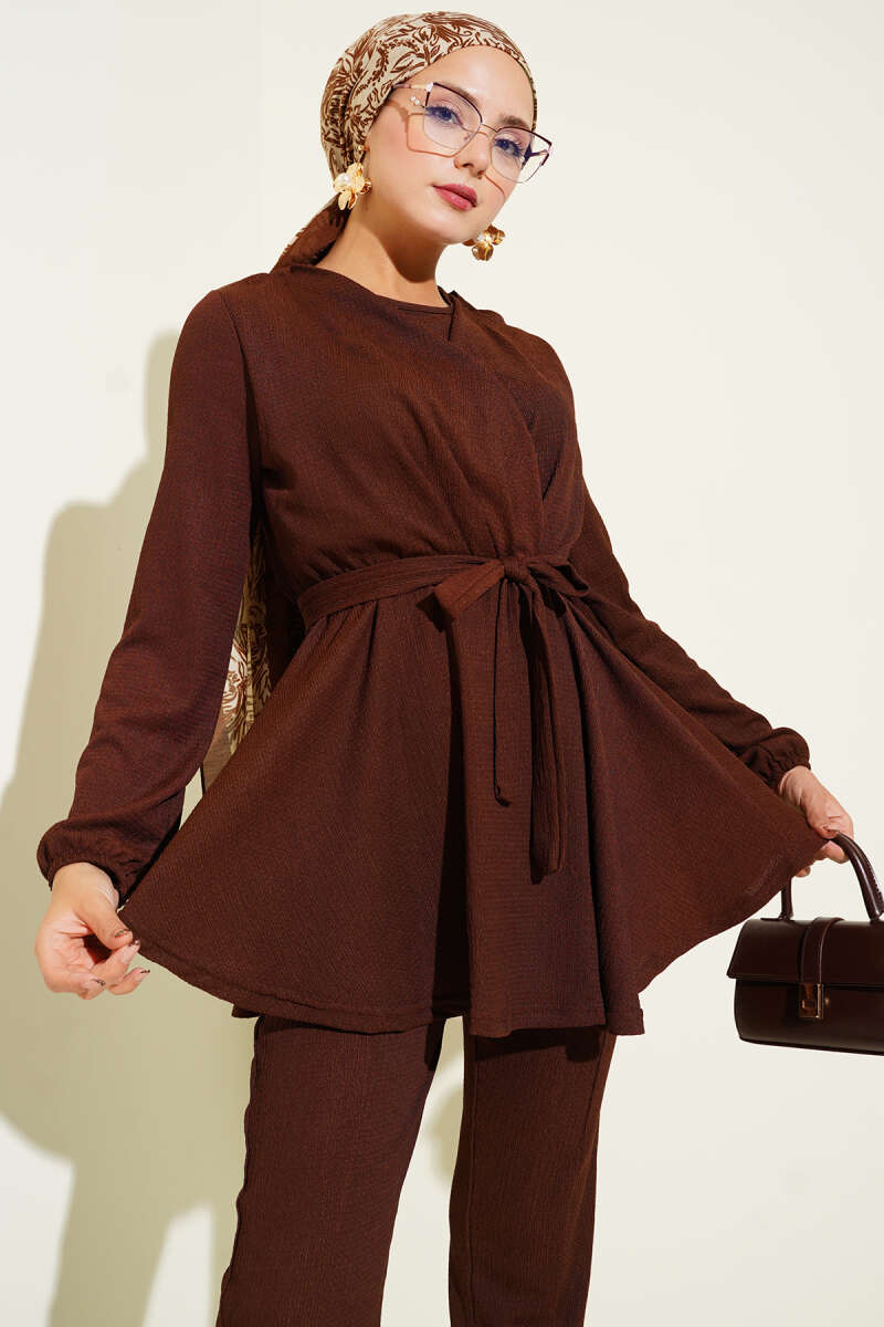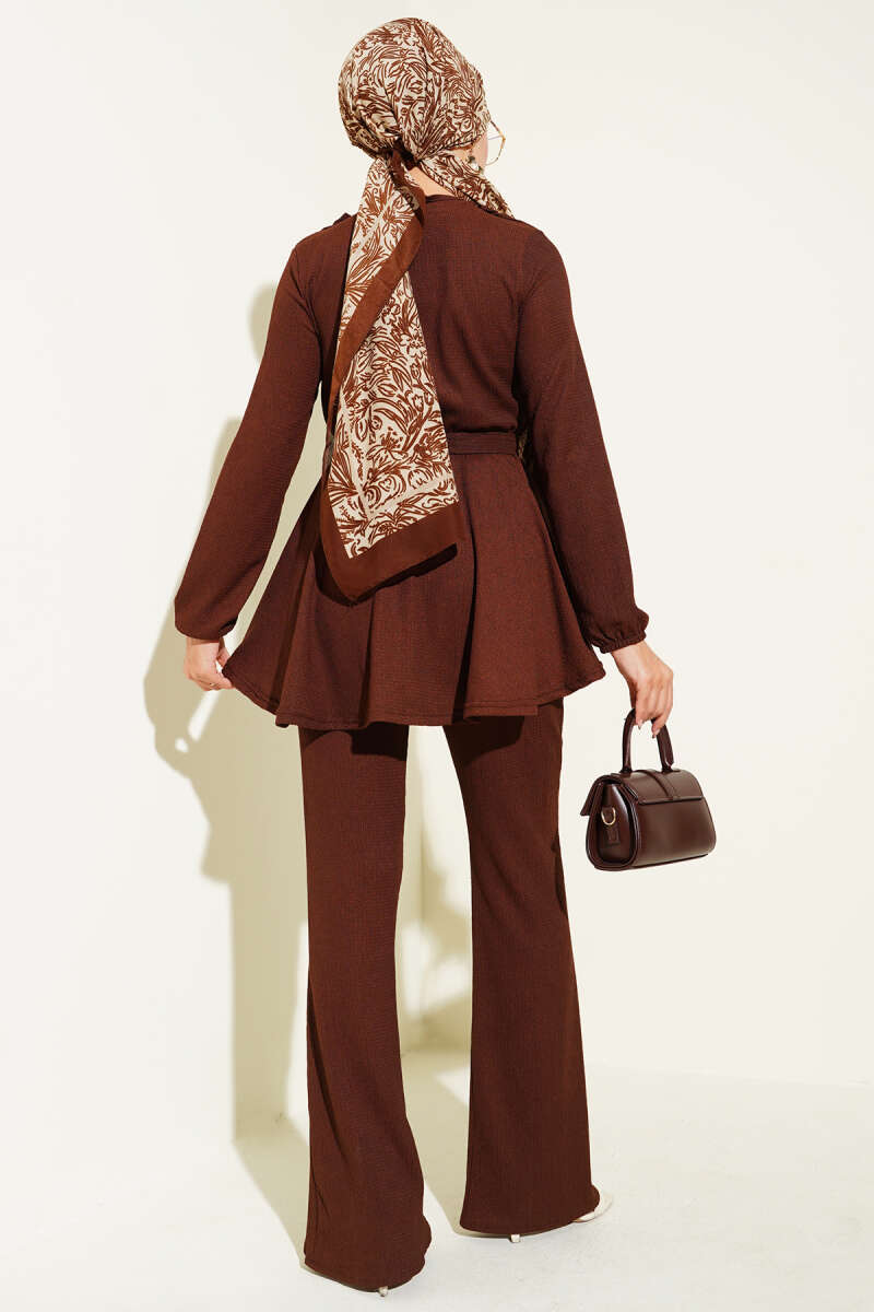 Loyşa Taşlı Fermuarlı İkili Takım Kahve