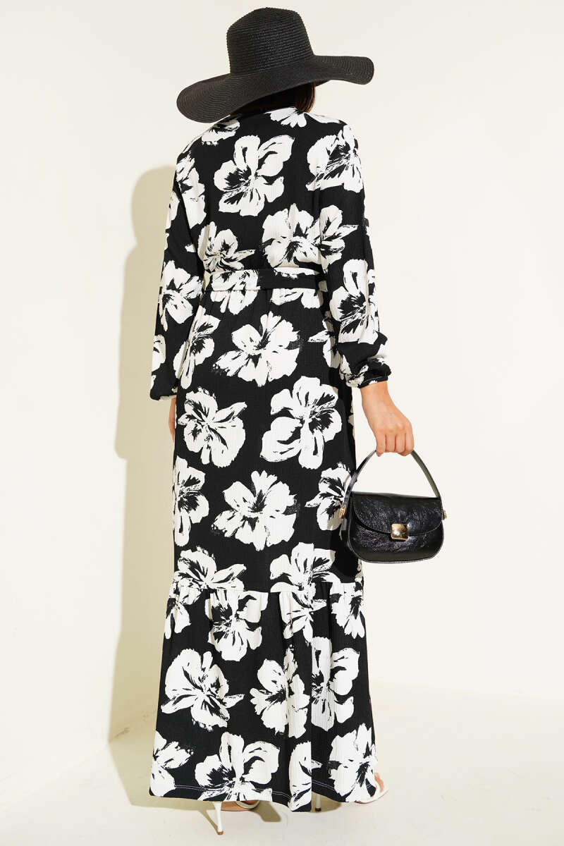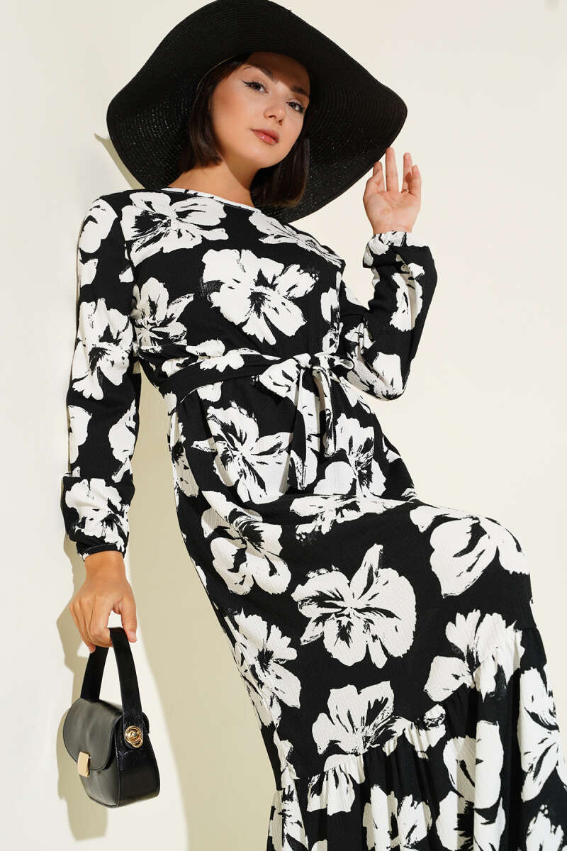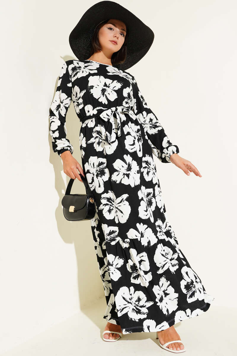 Bilek Bağlamalı Kuşaklı Abiye Elbise Siyah