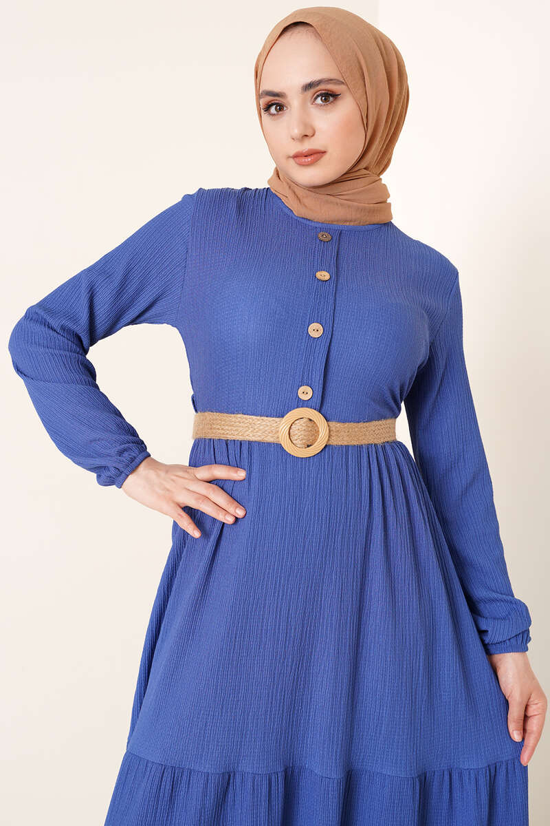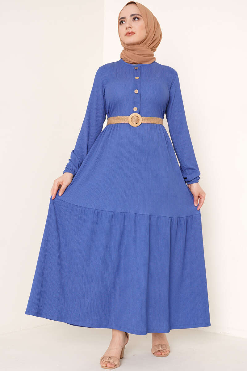 Yeni sezon model elbisemiz harika görünümüyle sizler için geldi. Elbisemiz bürümcük yapıdadır. Hasır kemeri ve iki adet kemer köprüsü bulunmaktadır. Önünde dört adet düğme detayı vardır. Kat modeldir. Bilekleri lastiklidir. Her ortamda rahatlıkla giyebilirsiniz. Farklı renk seçenekleri mevcuttur.