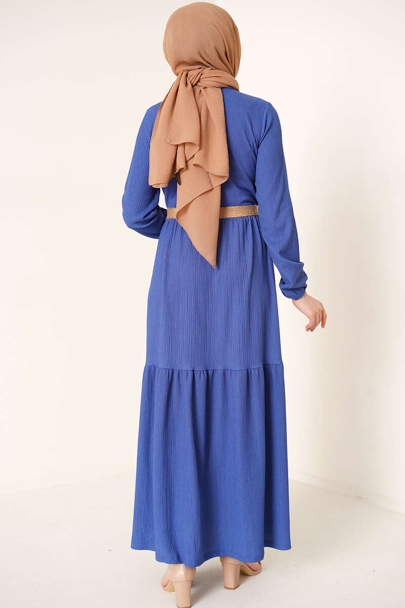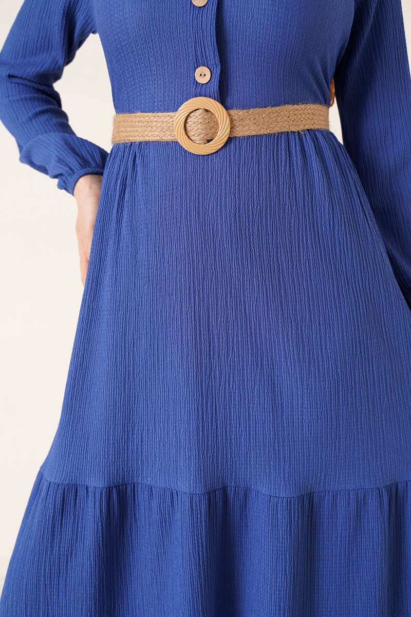 Bel Tünelli Garnili Kot Elbise Lacivert