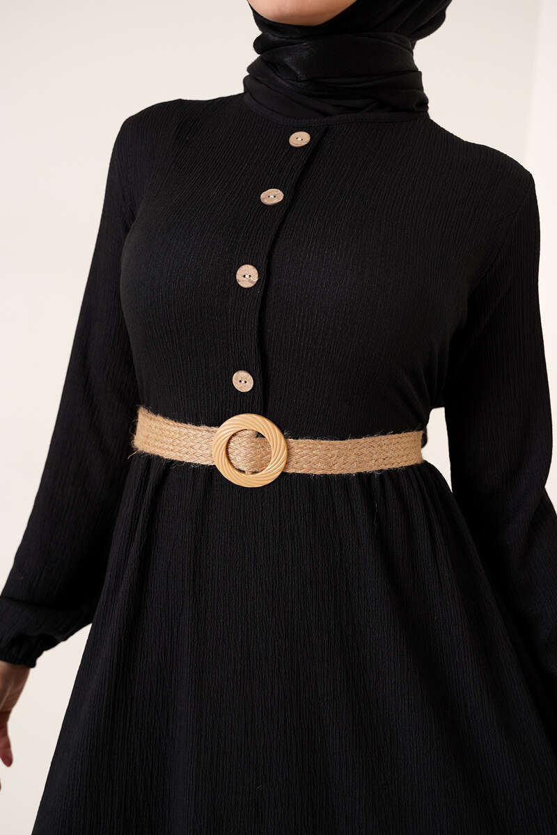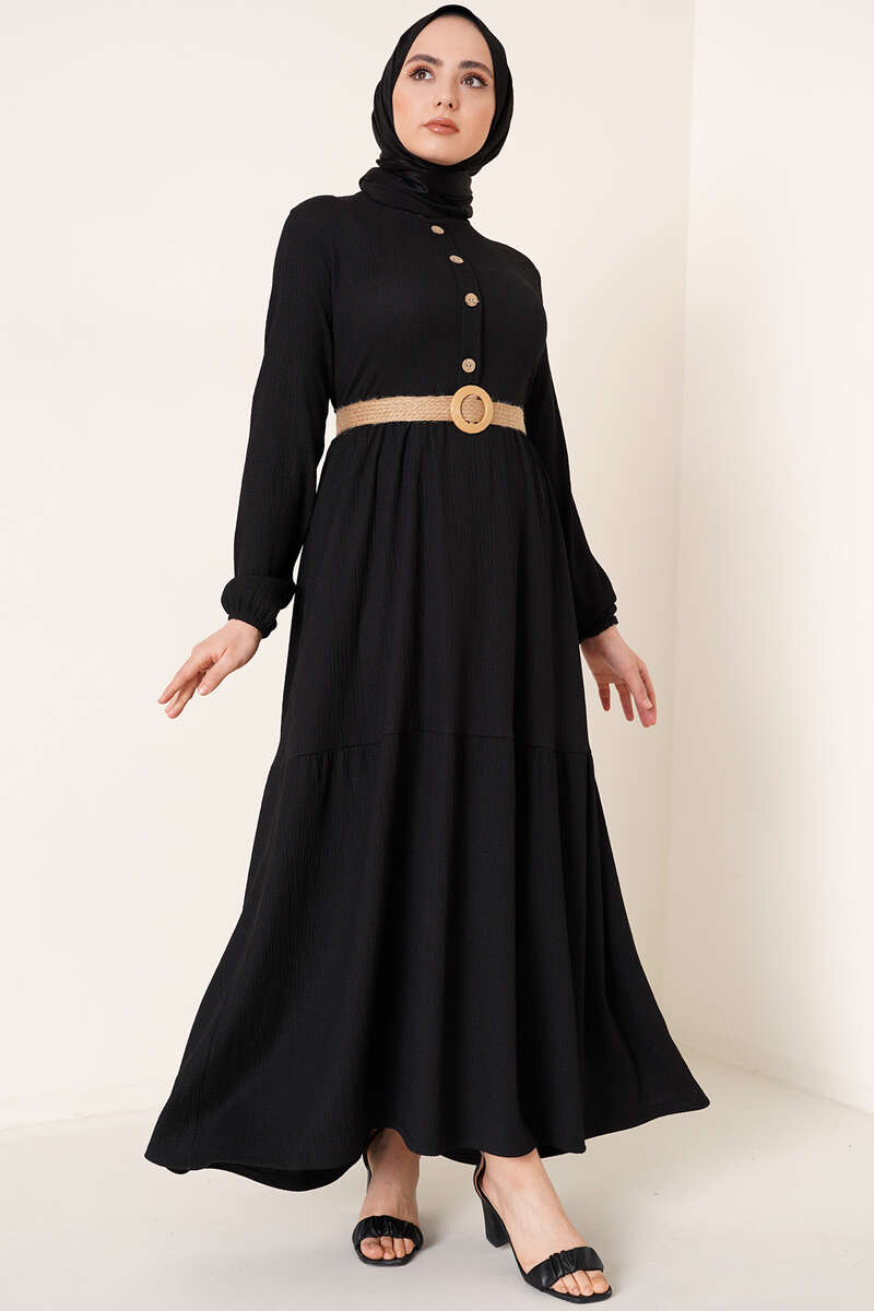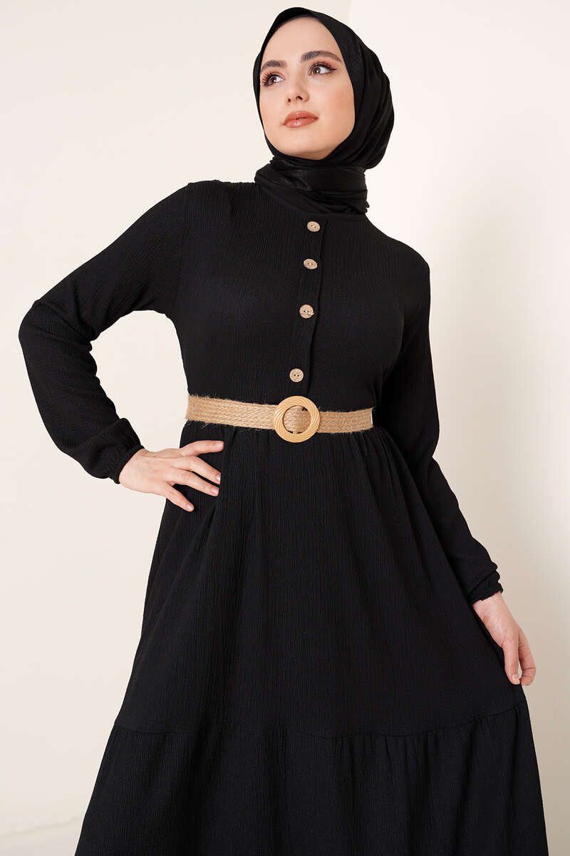 Yeni sezon model elbisemiz harika görünümüyle sizler için geldi. Elbisemiz bürümcük yapıdadır. Hasır kemeri ve iki adet kemer köprüsü bulunmaktadır. Önünde dört adet düğme detayı vardır. Kat modeldir. Bilekleri lastiklidir. Her ortamda rahatlıkla giyebilirsiniz. Farklı renk seçenekleri mevcuttur.