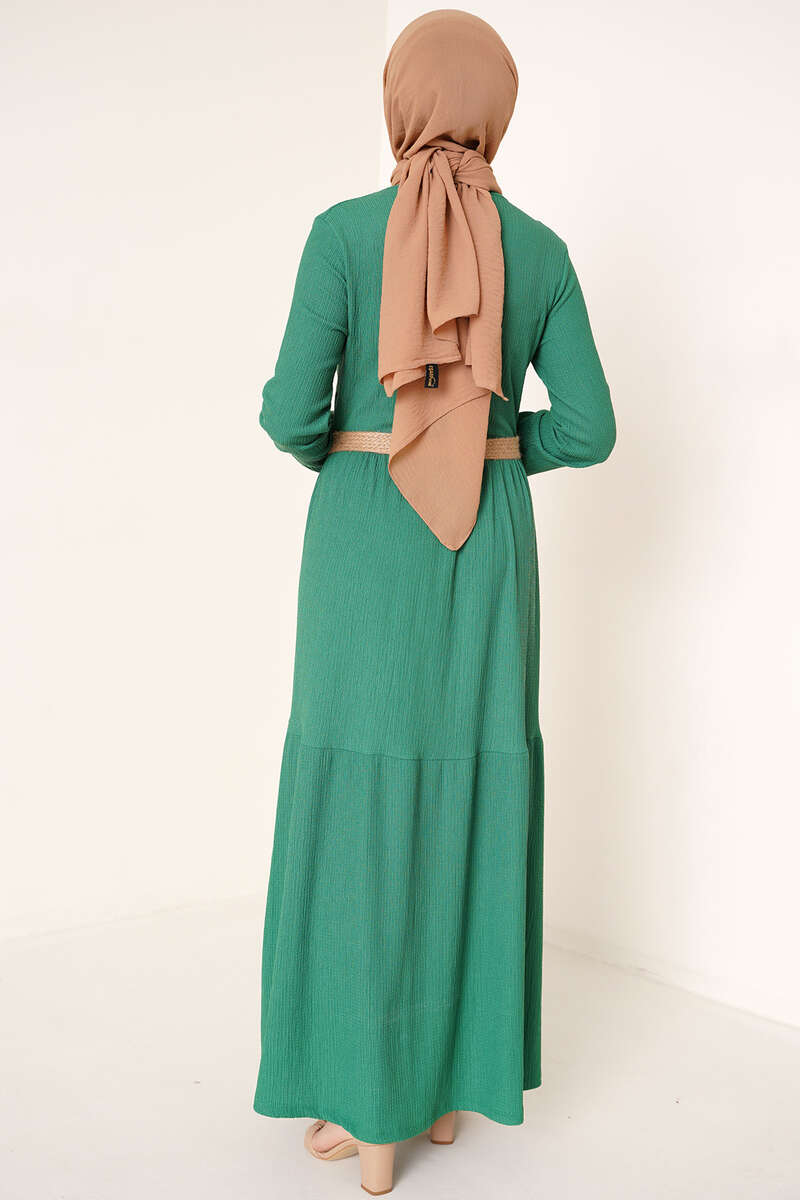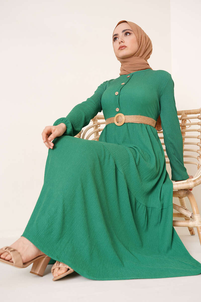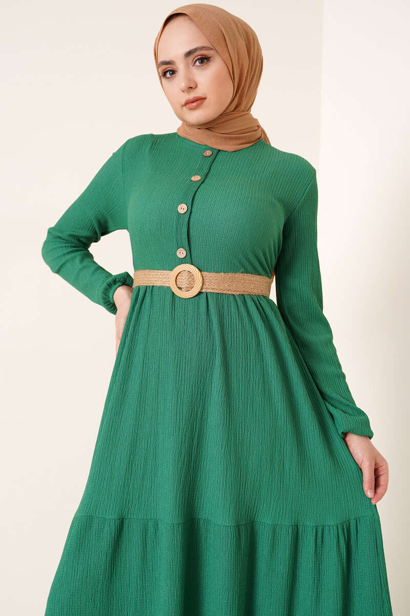 Bürümcük Dört Düğmeli Elbise Yeşil