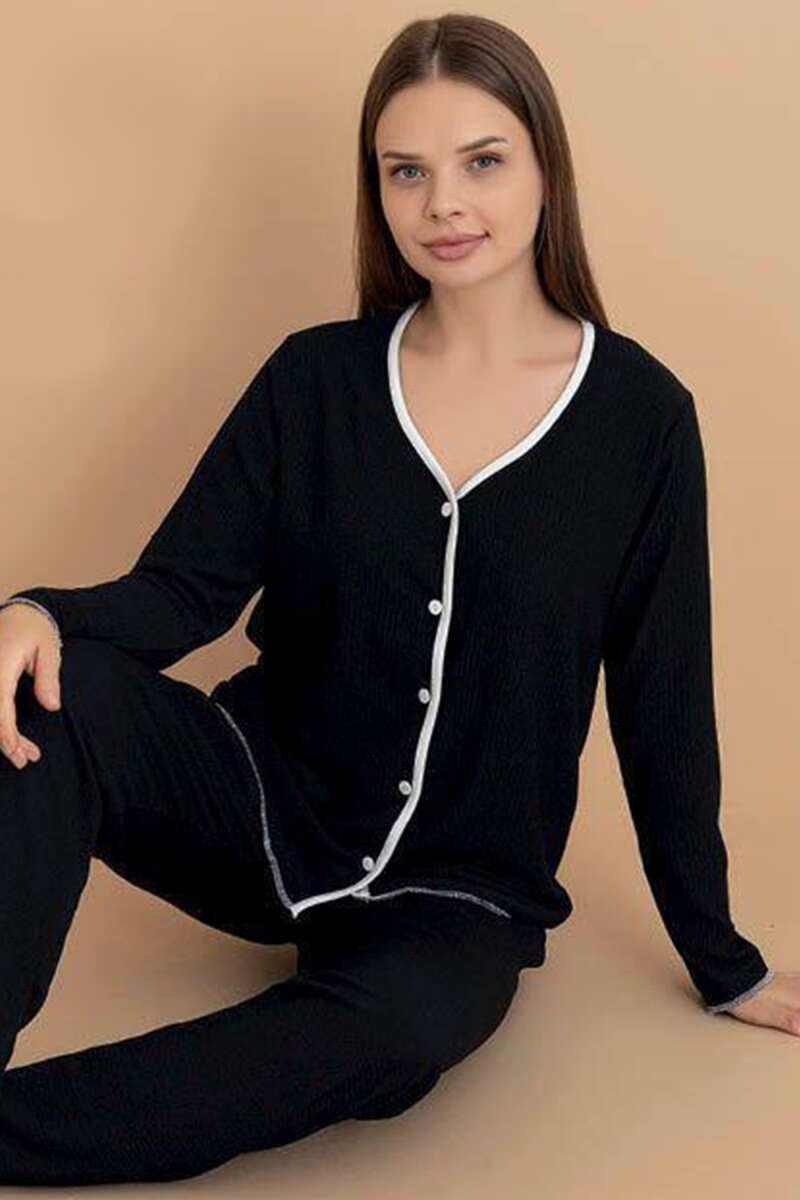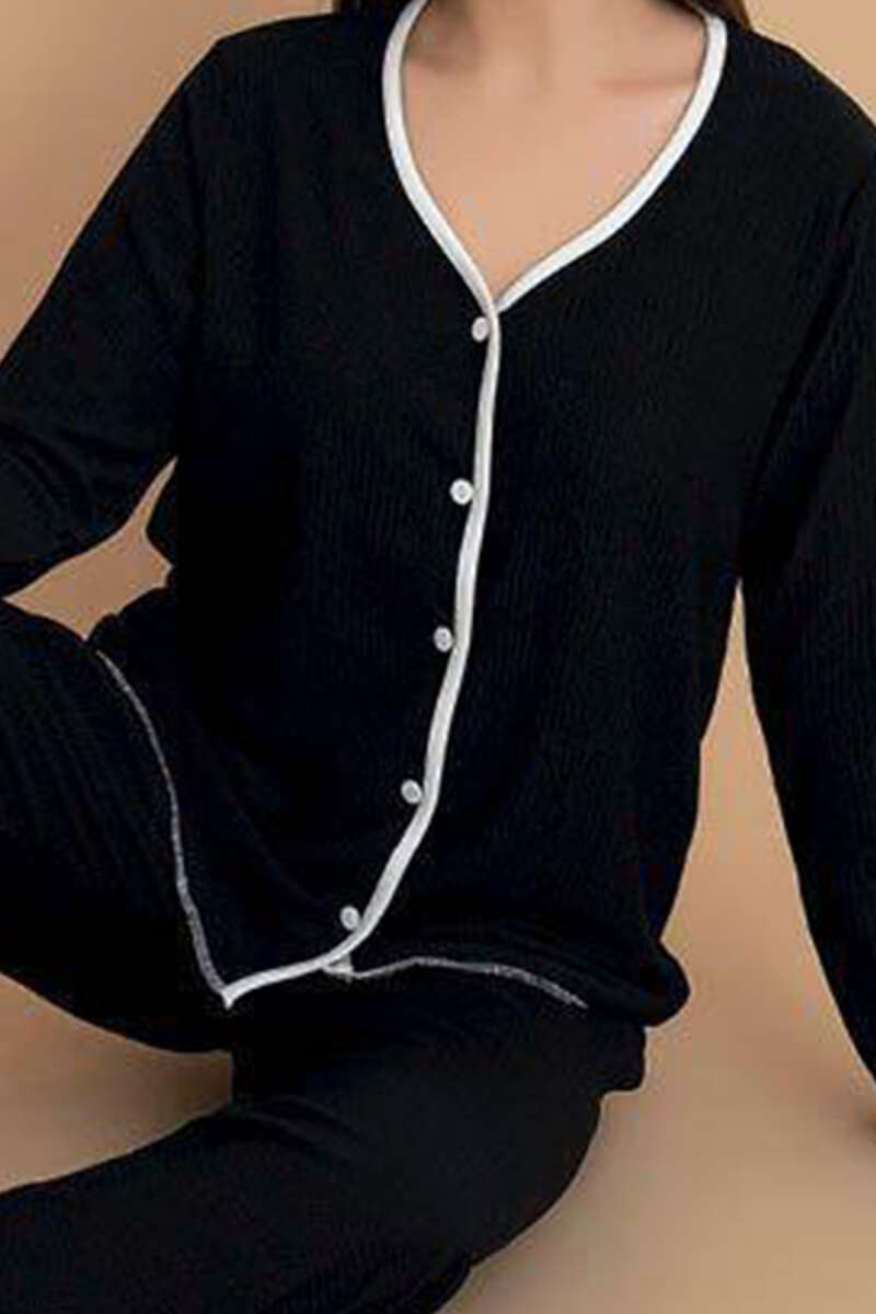 Bürümcük Düğmeli Pijama Takımı Siyah