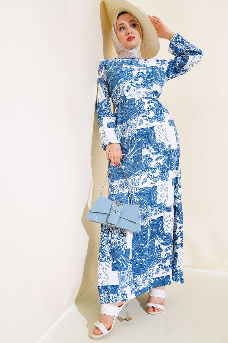 Bürümcük Elbise Desenli Turkuaz