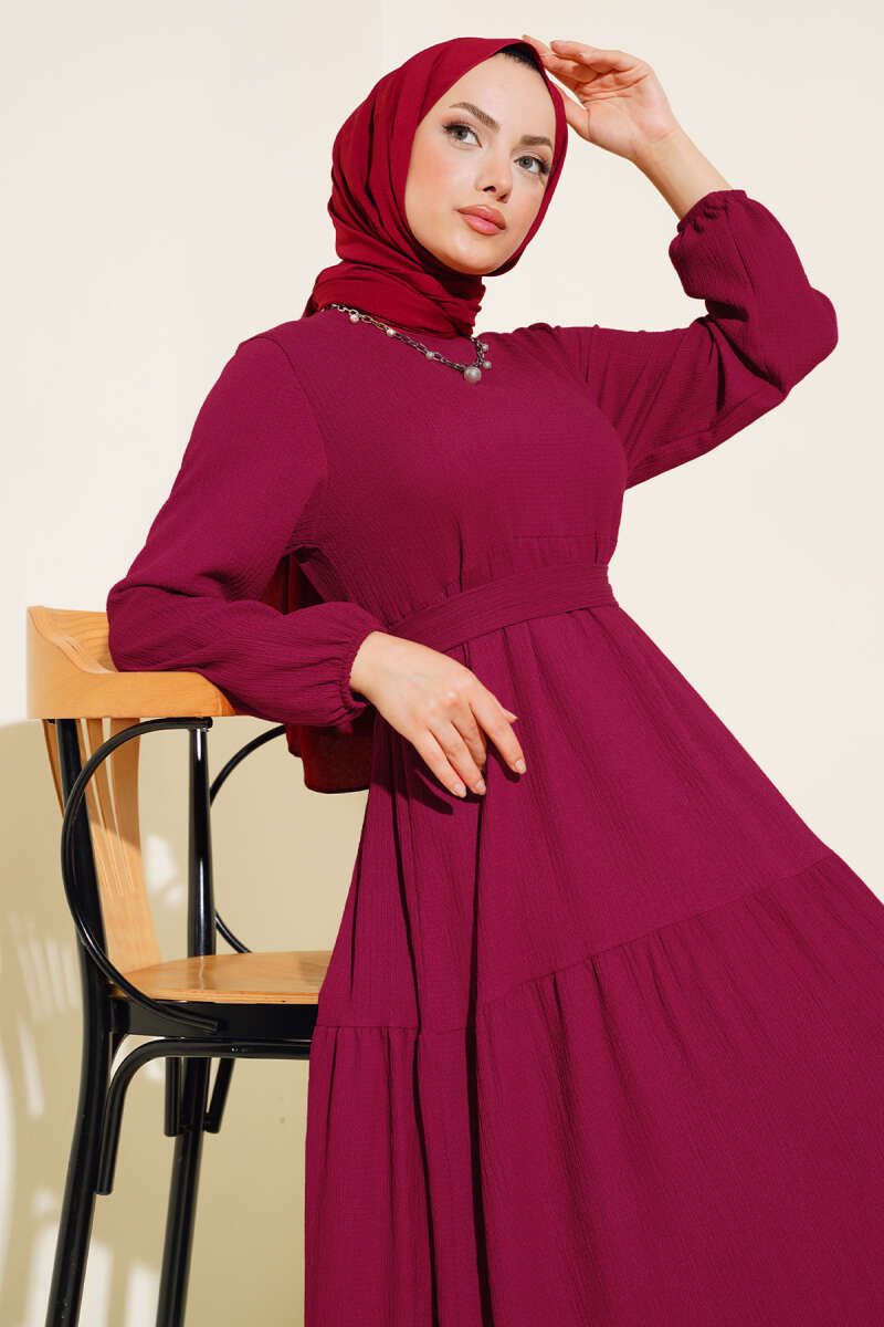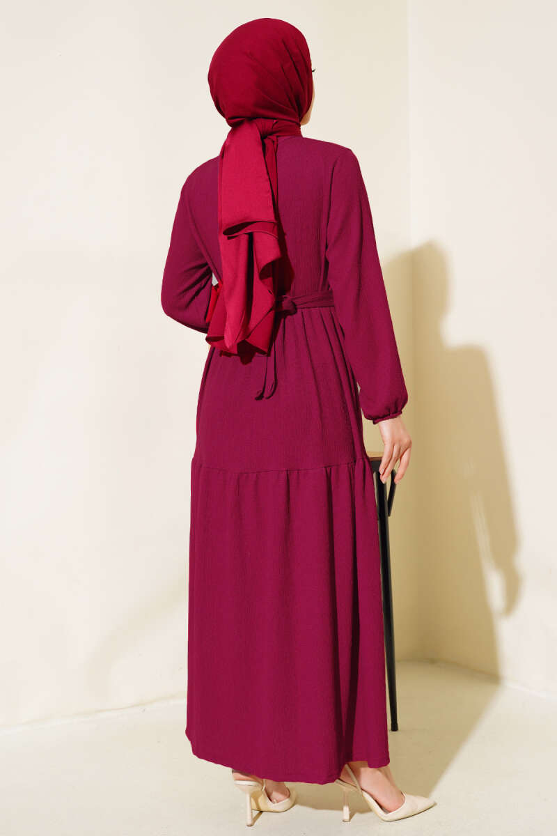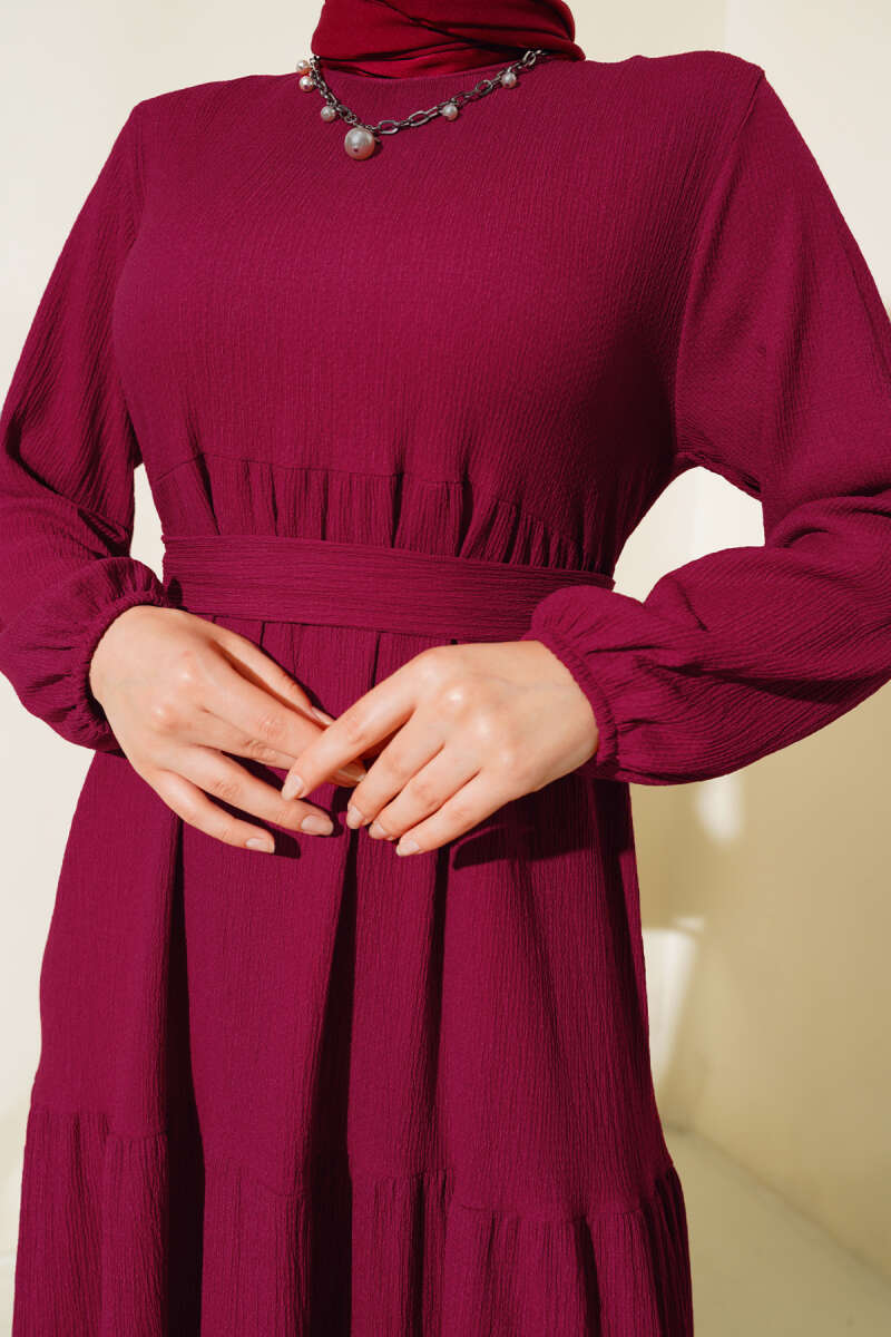 Kuşaklı Dik Fitilli Kaşe Elbise Kahve