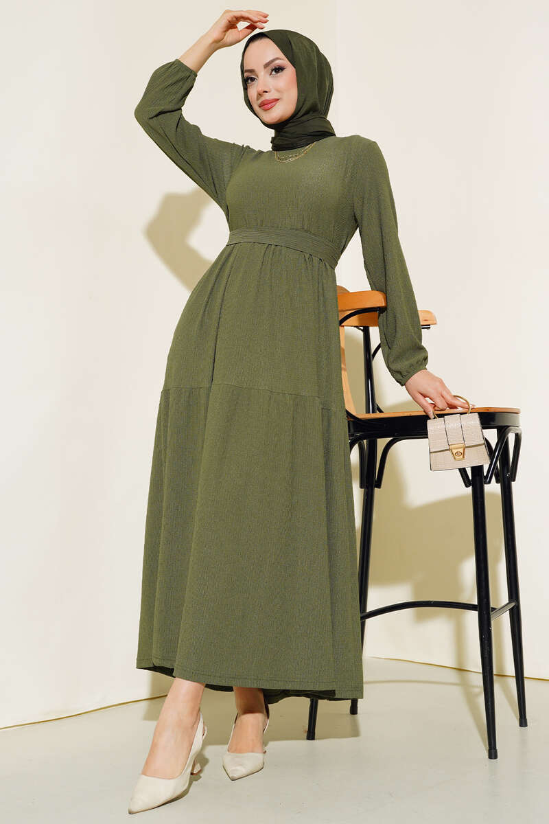 Yeni sezon elbisemiz sizlerle beraber. Elbisemiz bürümcük olup, kat modeldir. Kol bilekleri lastiklidir. Astarsızdır. Elbisemizin kendi kumaşından kuşağı bulunmaktadır. Oldukça rahattır. Elbisemiz sade ve sportif oluşuyla favoriniz olacak. Renk seçenekleri mevcuttur. Kolye Aksesuardır.