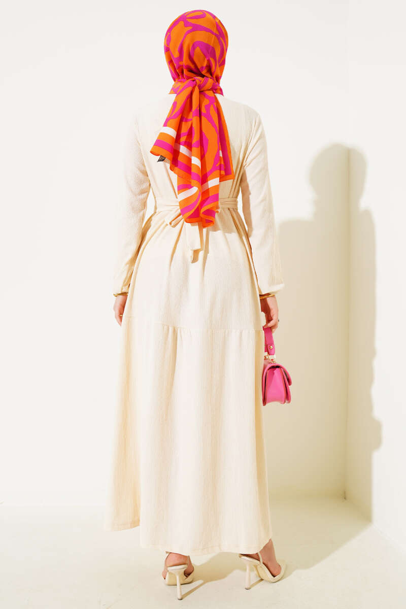 Kuşaklı Dik Fitilli Kaşe Elbise Latte