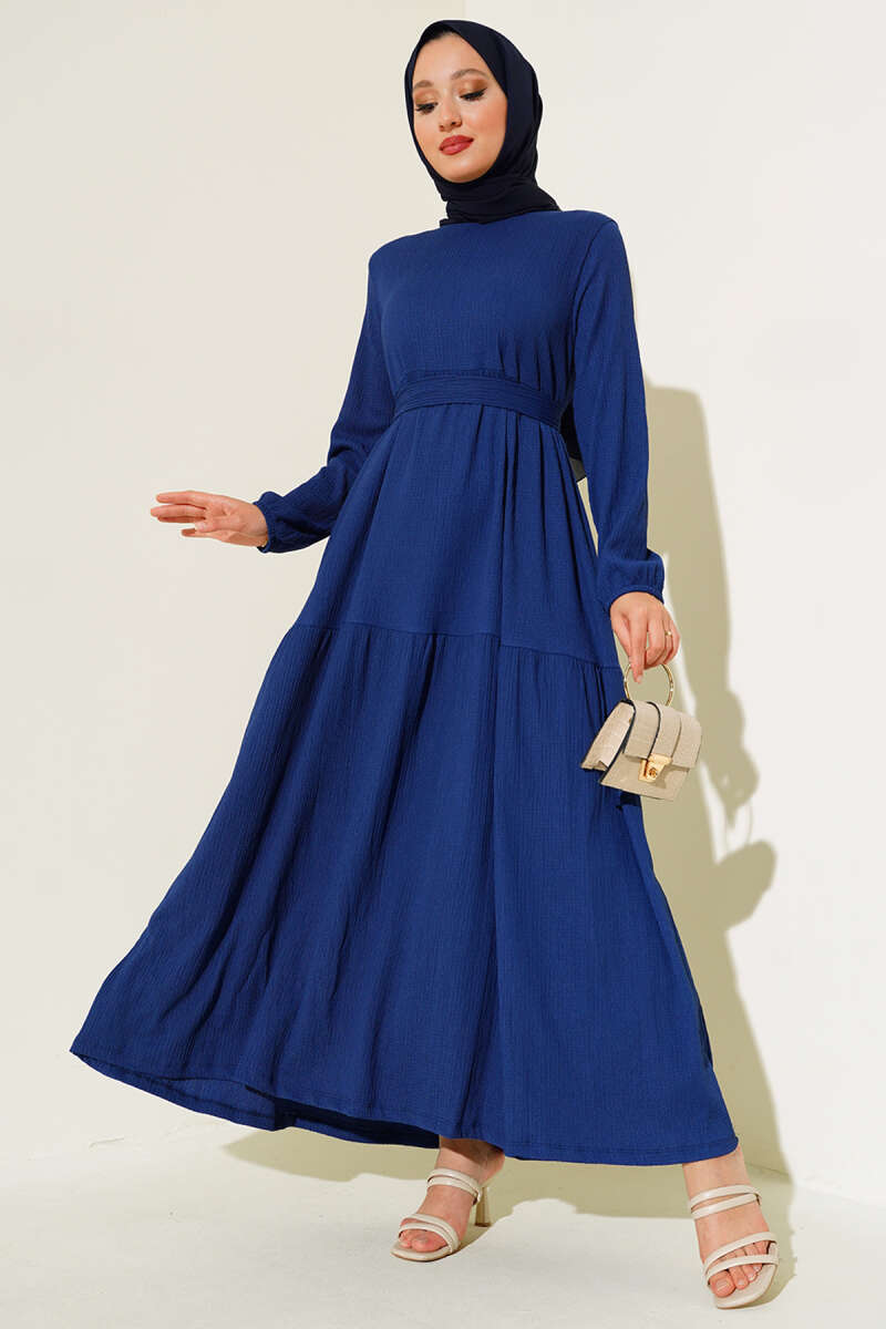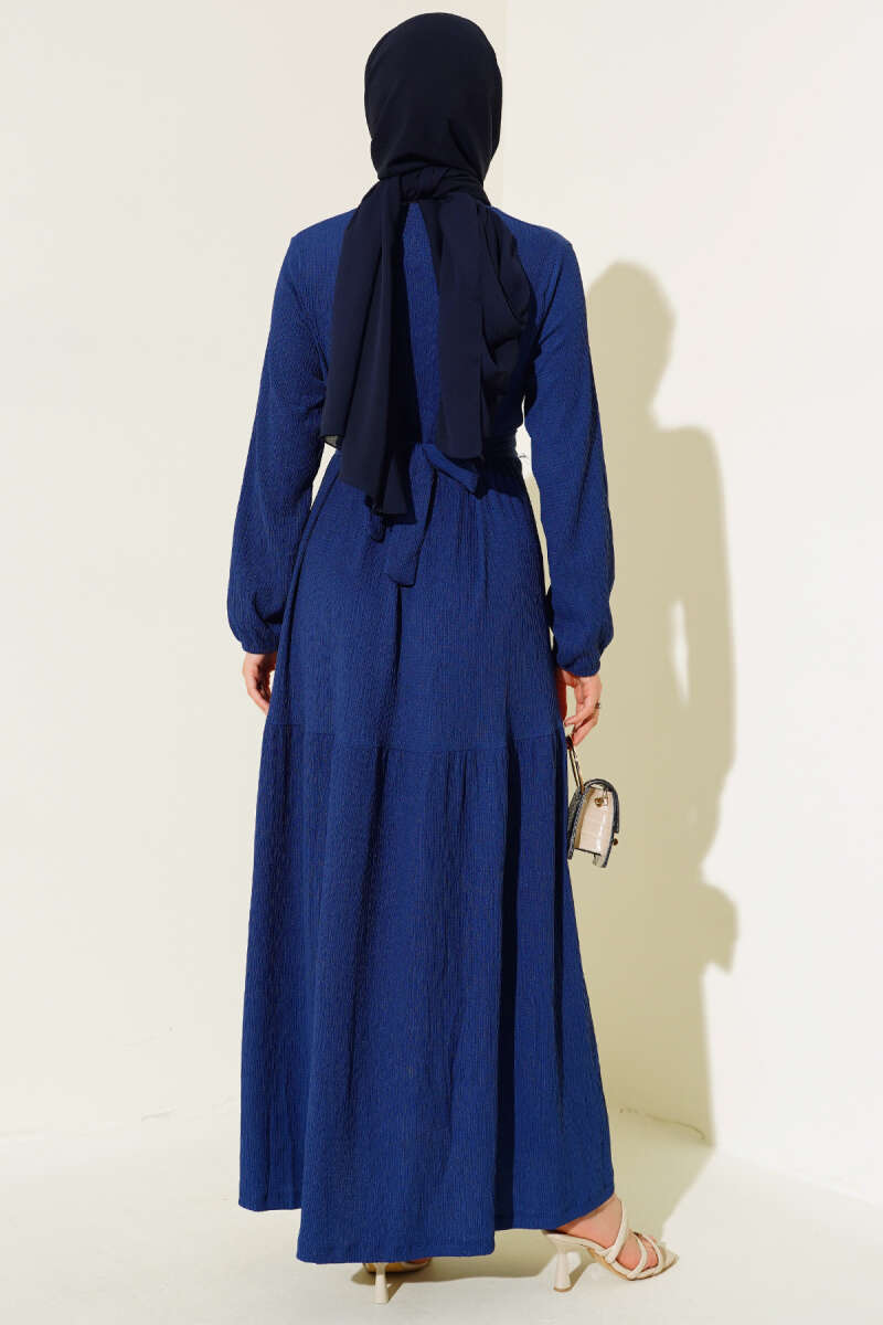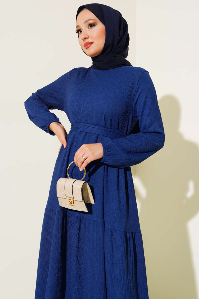 Balon Kol Kemerli Basic Elbise Lacivert