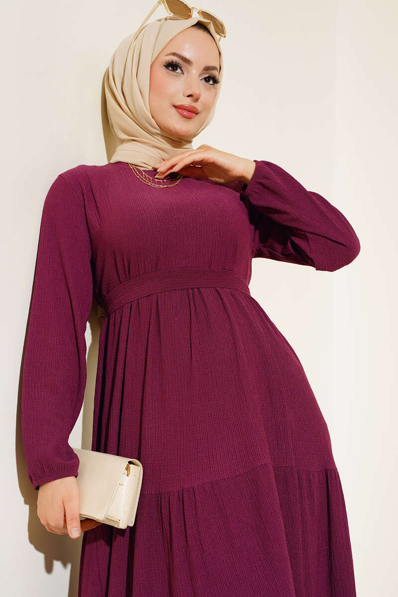 Yeni sezon elbisemiz sizlerle beraber. Elbisemiz bürümcük olup, kat modeldir. Kol bilekleri lastiklidir. Astarsızdır. Elbisemizin kendi kumaşından kuşağı bulunmaktadır. Oldukça rahattır. Elbisemiz sade ve sportif oluşuyla favoriniz olacak. Renk seçenekleri mevcuttur. Kolye Aksesuardır.