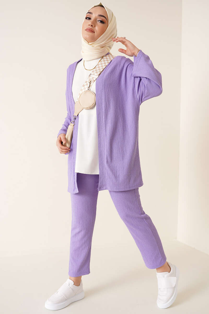 Yeni sezon ikili takımımız sportif bir görünüm sunmaktadır. Takımımız bürümcük kumaştan yapılmıştır. Takımımızın üst kısmı kimonodur. Kolları kısadır. Pantolonun iki cebi vardır. Belinde lastik bulunmaktadır. Takımımızı her ortamda rahatlıkla giyebilirsiniz. Farklı renk seçenekleri mevcuttur.