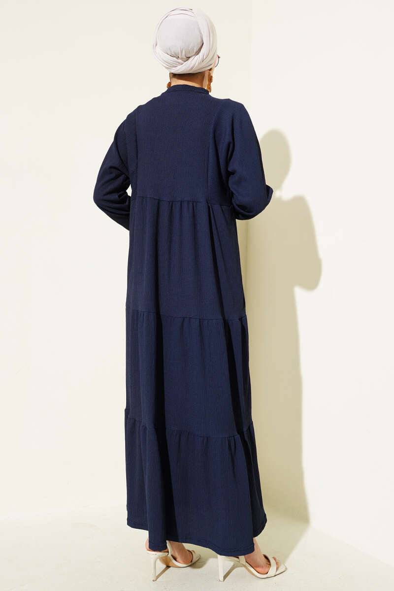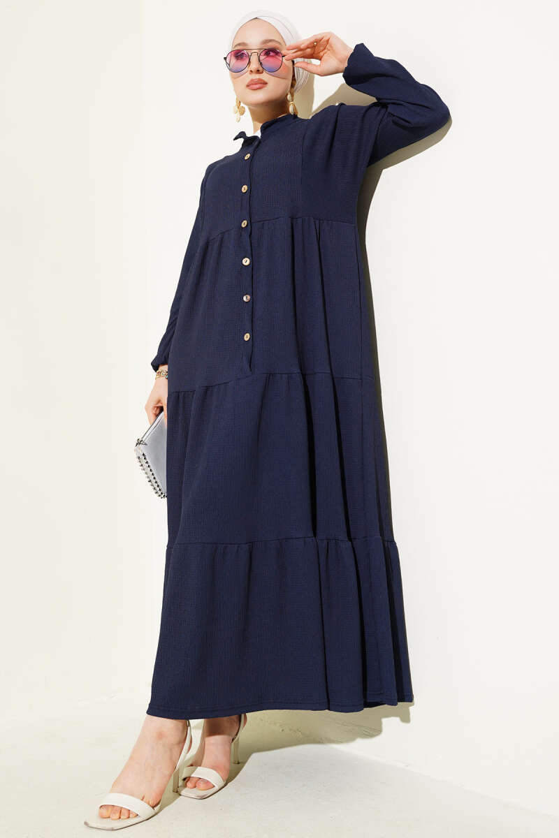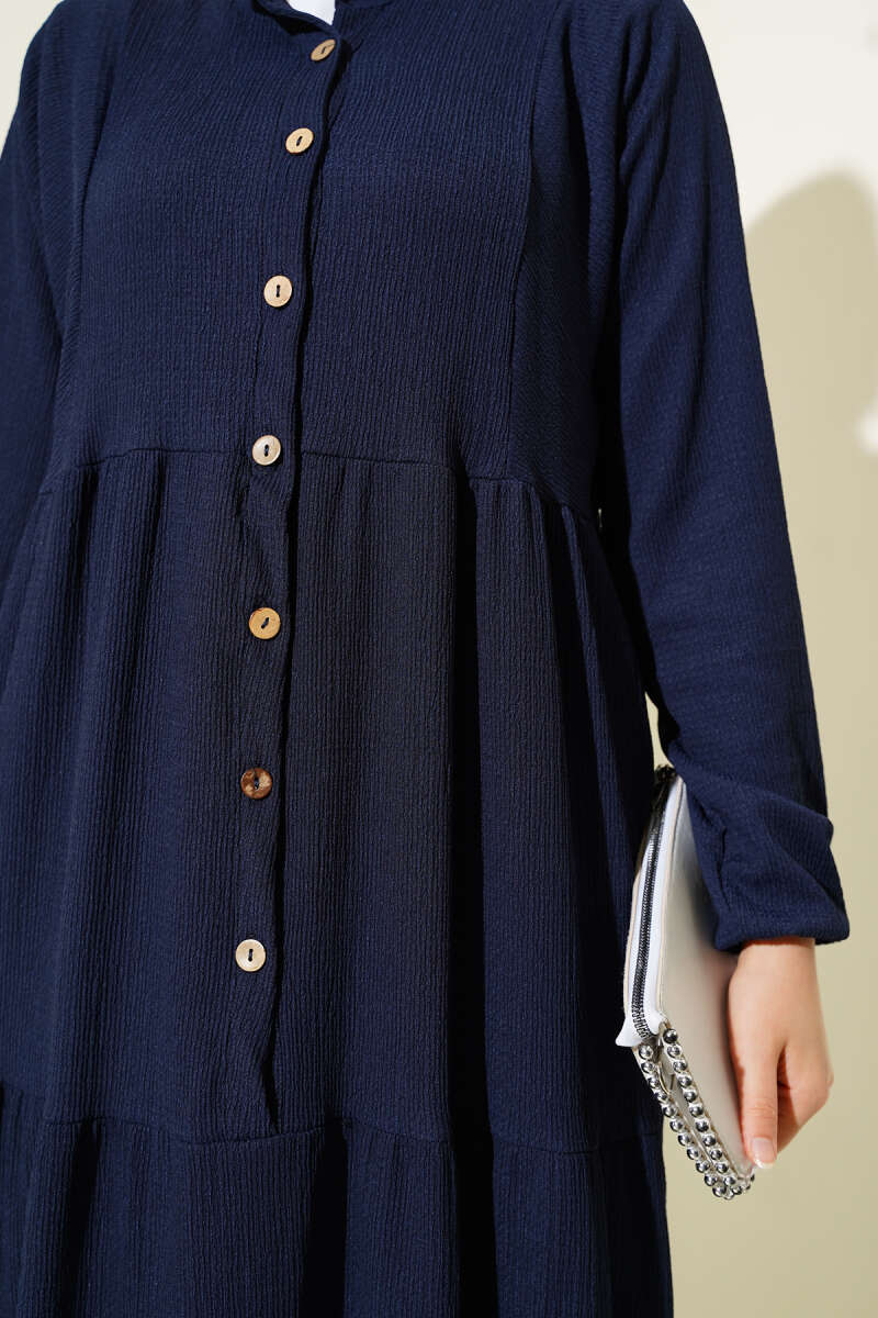 Bürümcük Önü Düğmeli Elbise Lacivert