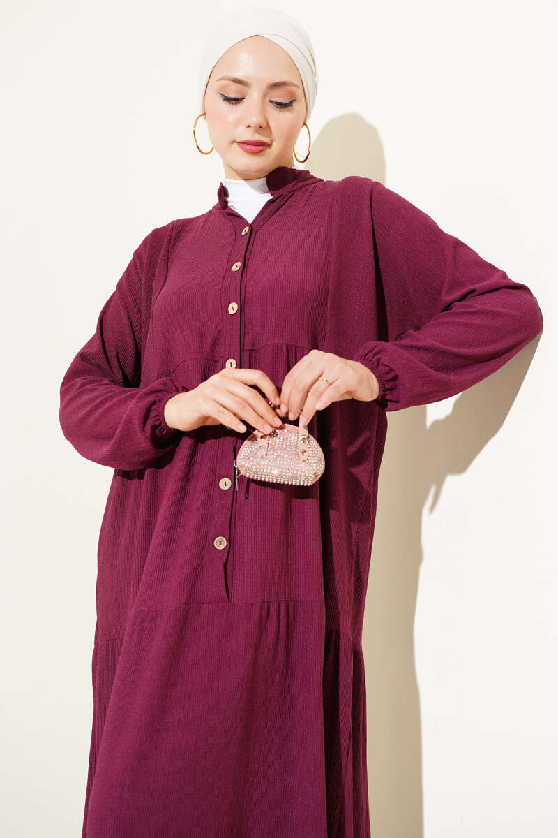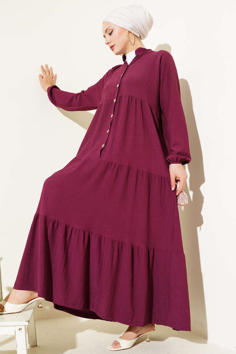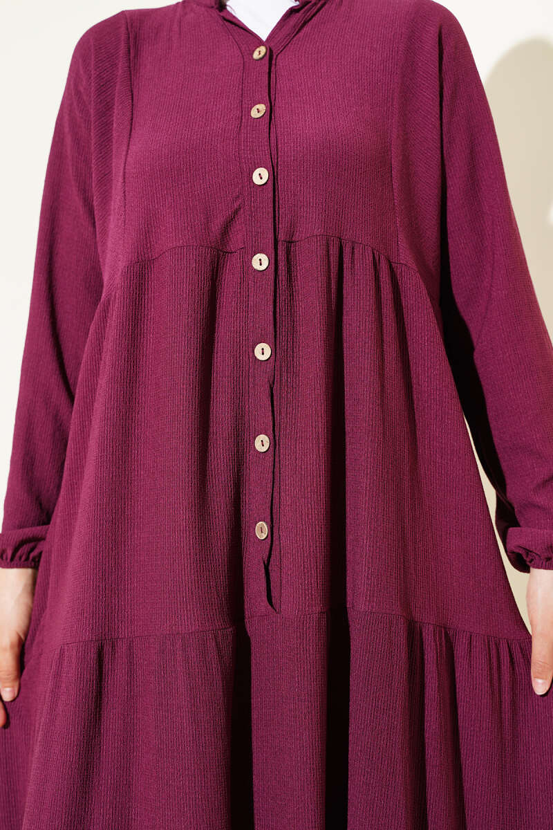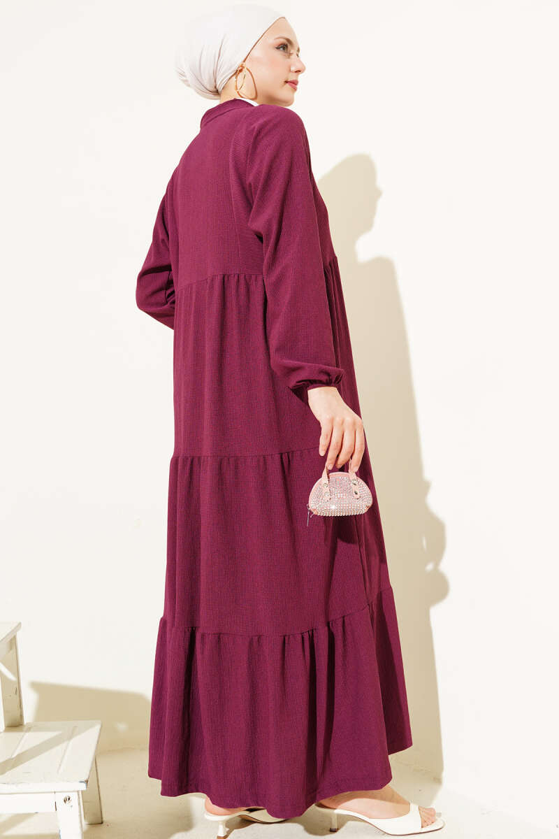 Kolları Coton Beli Büzgülü Kiremit Elbise