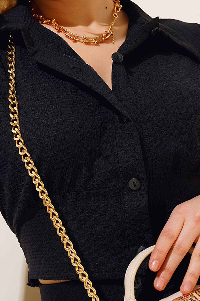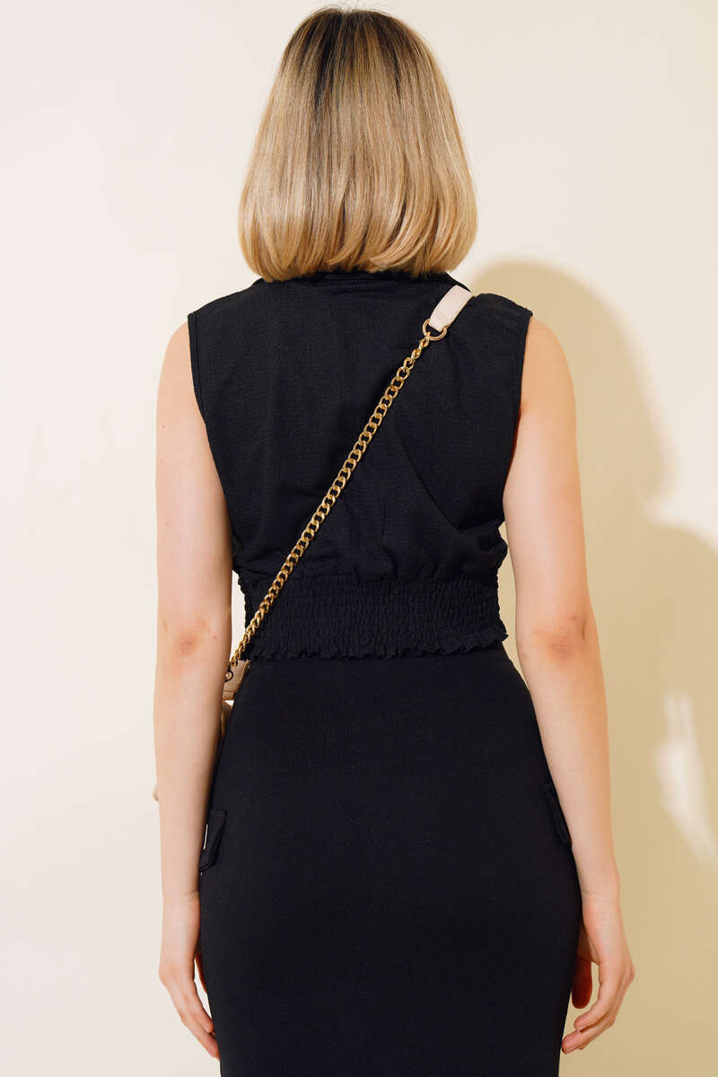 Yeni sezonun bluzu favorilerinizin arasında yerini alacak. Bluzumuz gömlek yaka olup, boydan düğmelidir. Kolsuz modeldir. Bluzumuz bel kısmı bürümcüklü ve lastiklidir. Hem şık hem spor tasarımıyla rahatlıkla kombin yapılabilir. Renk seçenekleri mevcuttur.