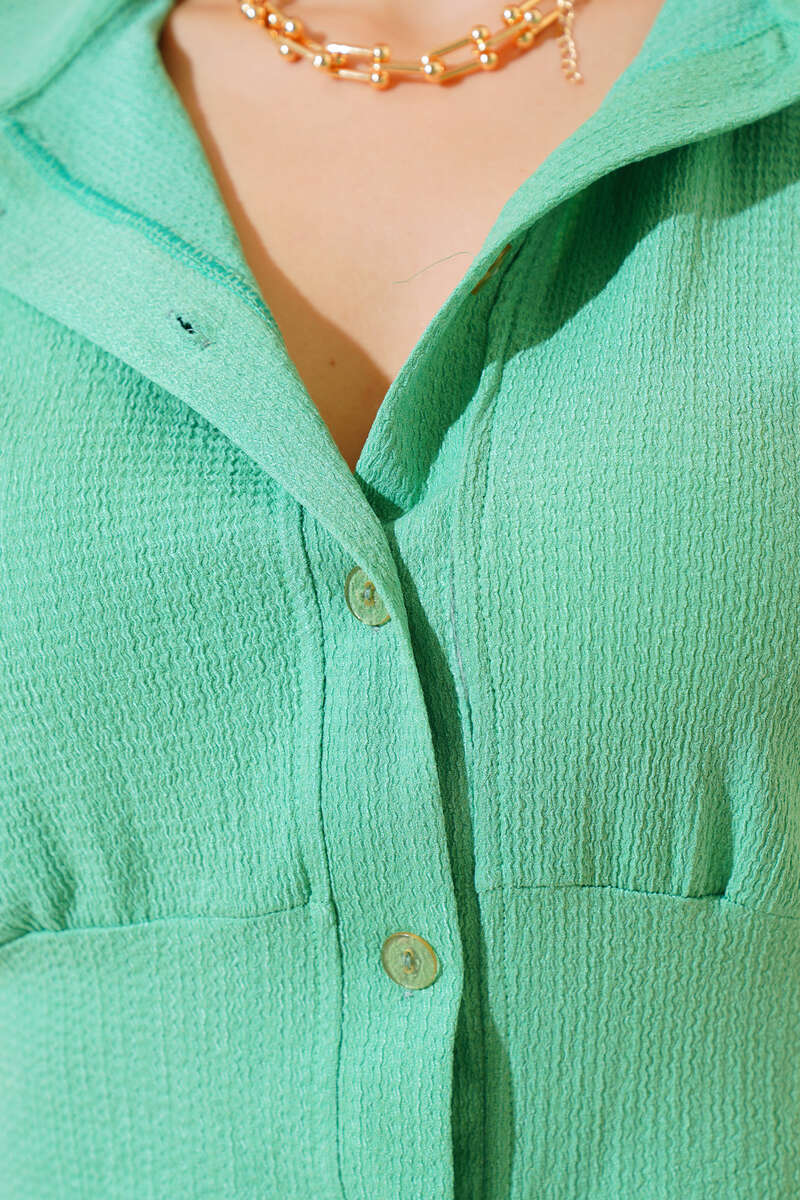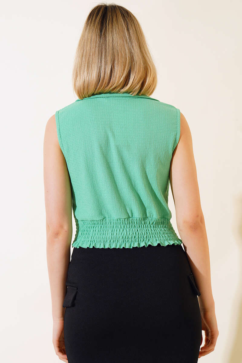 Bürümcüklü Kolsuz Bluz Yeşil