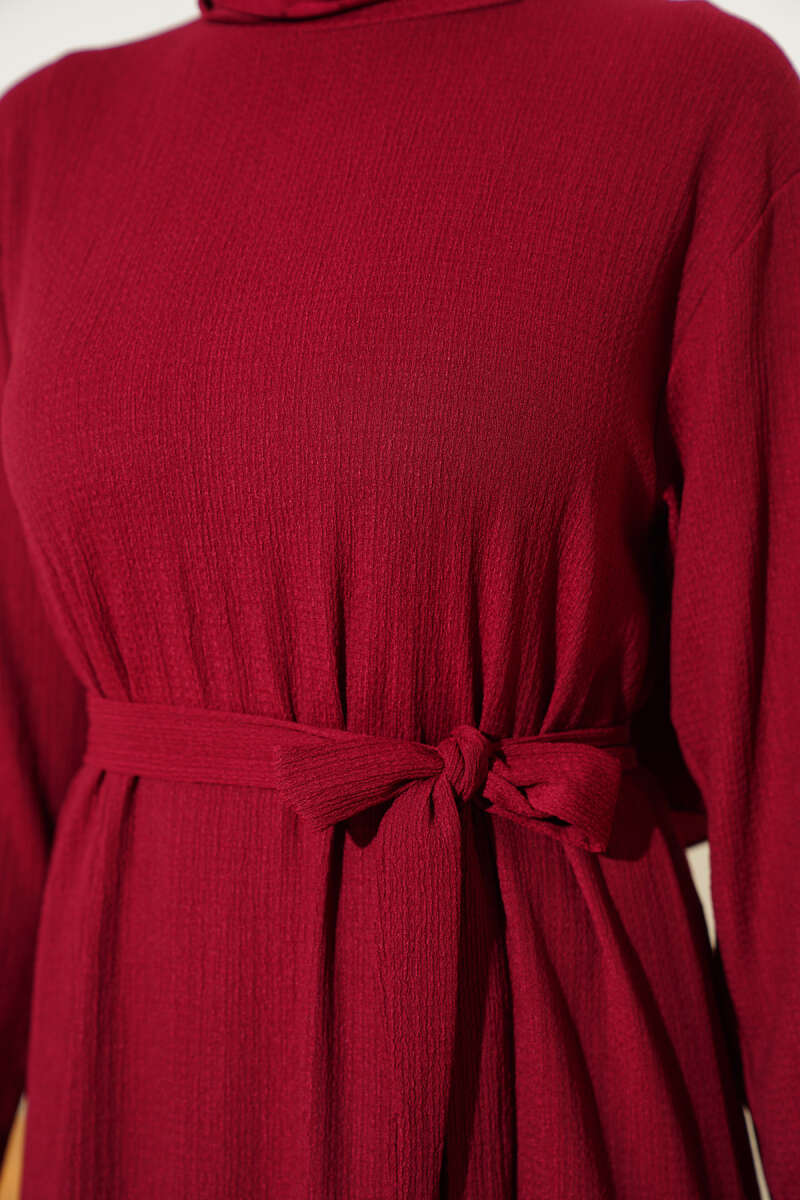 Gömlek Yaka Düğmeli Triko Elbise Bordo