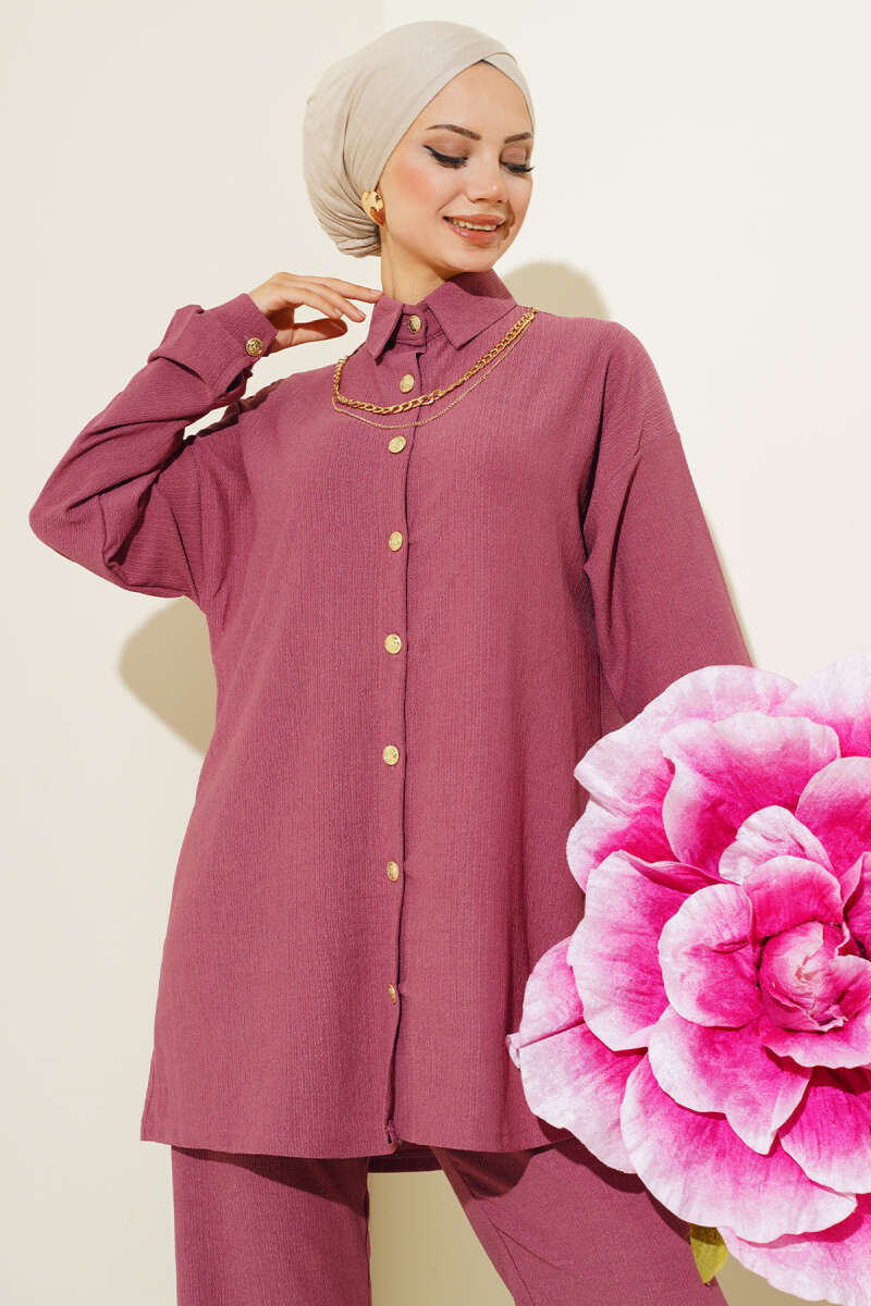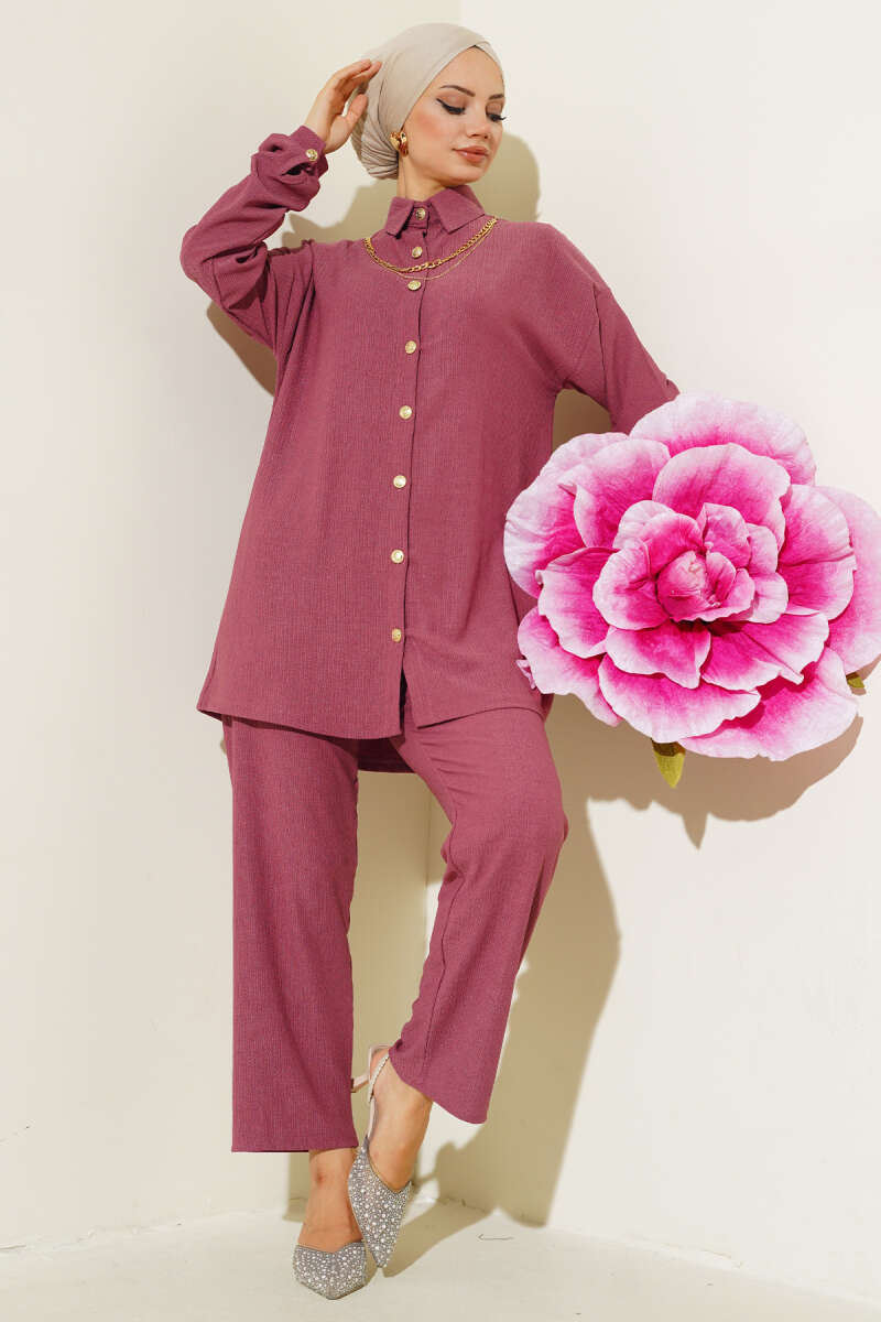 Yırtmaç Detaylı Tunik İkili Takım Mor