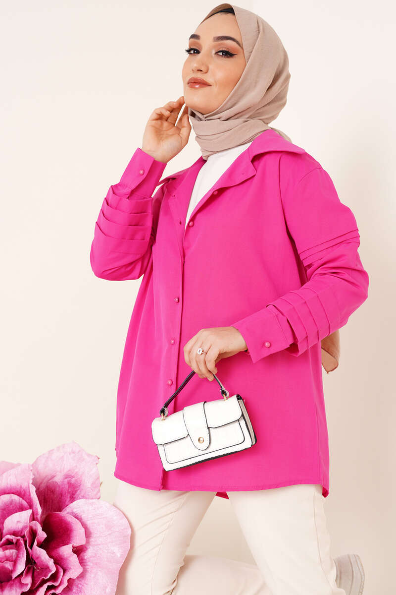 Yeni sezon gömleğimiz buton düğmeleriyle beğenileri üzerinde toplamakta. Kollarında bulunan kat kat detayı gömleğimize hareket kazandırmıştır. Geniş yakaya sahip olan gömeleğimiz renkleriyle sizi bekliyor.
