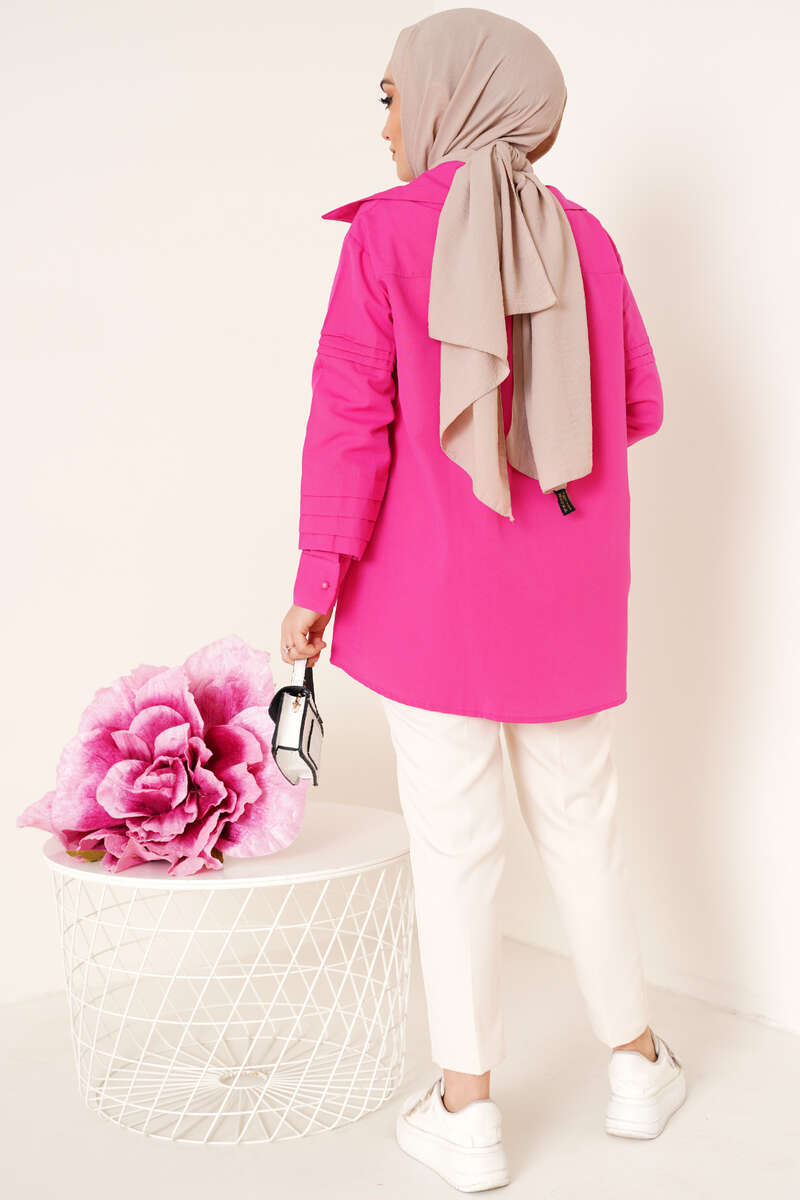 Taş Düğmeli Omuz Pileli Gömlek Bej